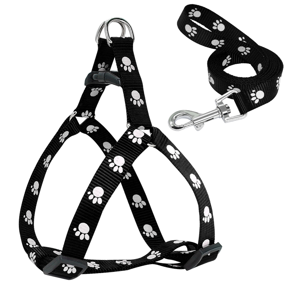 Nylon Dog Harness and Leash Set Adjustable Paw Print Dog Harness Walking Leash Strap for Small Medium Dogs