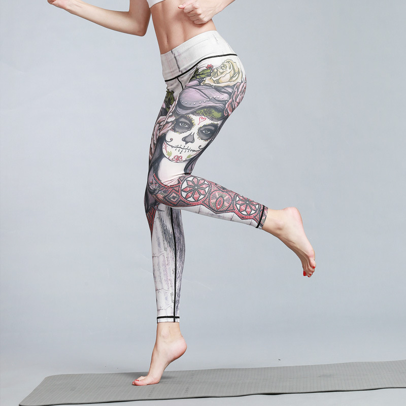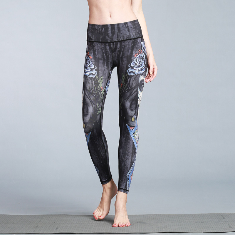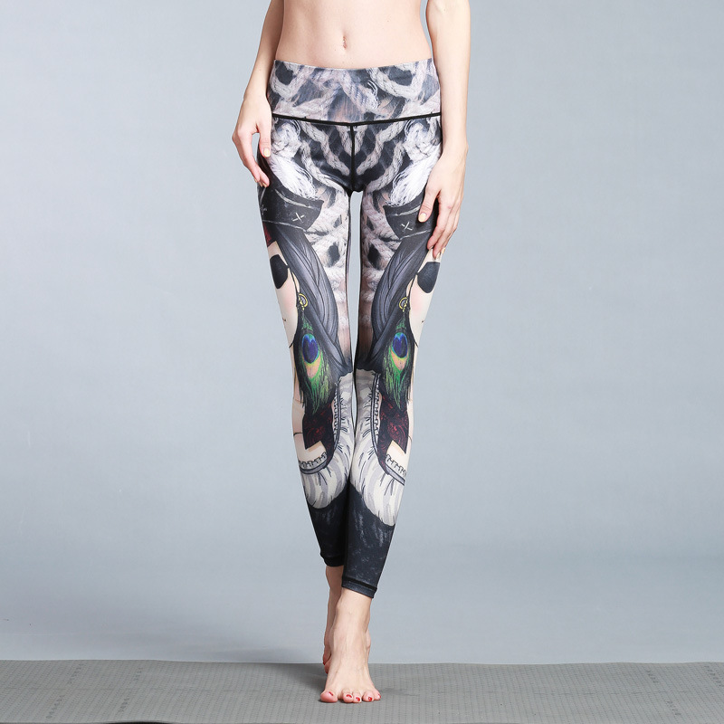 Printed elastic slim sports fitness cropped tights