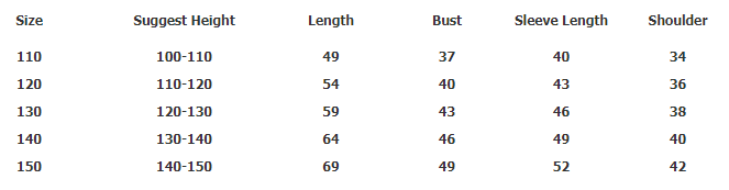 Size: 110cm, 120cm, 130cm, 140cm, 150cm