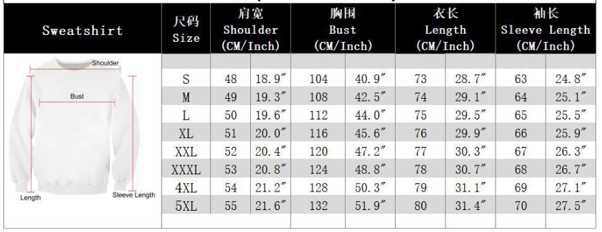 Size: S, M, L, XL, XXL, XXXL, XXXXL, 5XL, 6XL, 7X