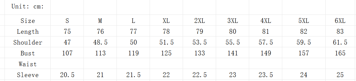 Size: S,M,L,XL,2XL,3XL,4XL,5XL,6XL.