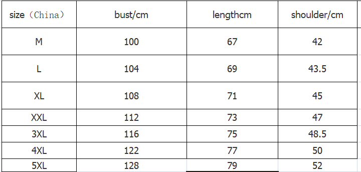 Size: M, L, XL, 2XL, 3XL, 4XL, 5XL