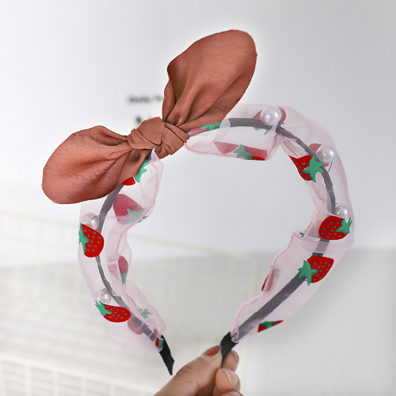 Printed Fruit Strawberry Headband Cute Bow Headband