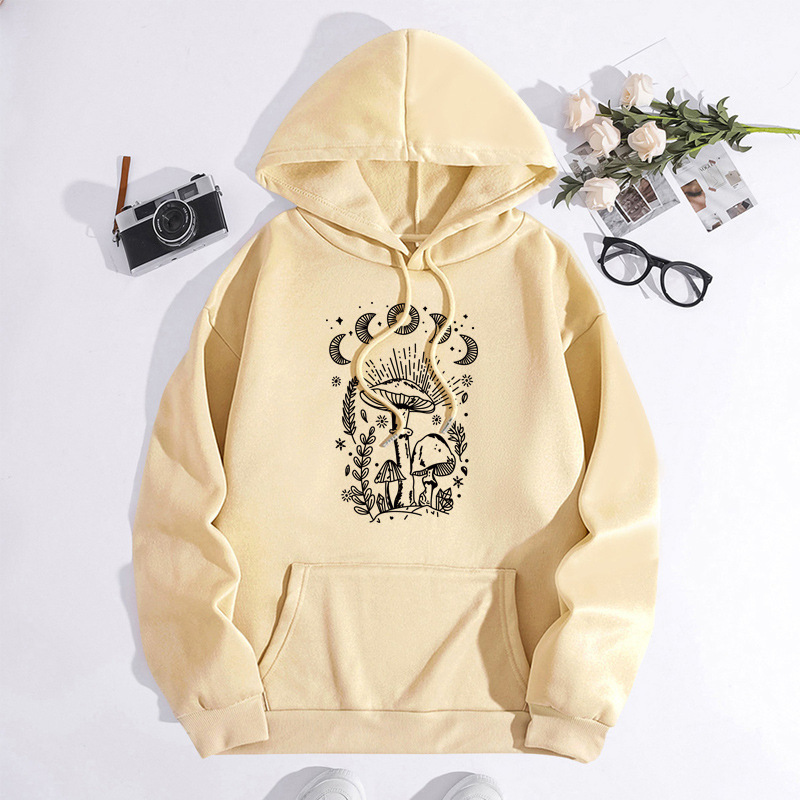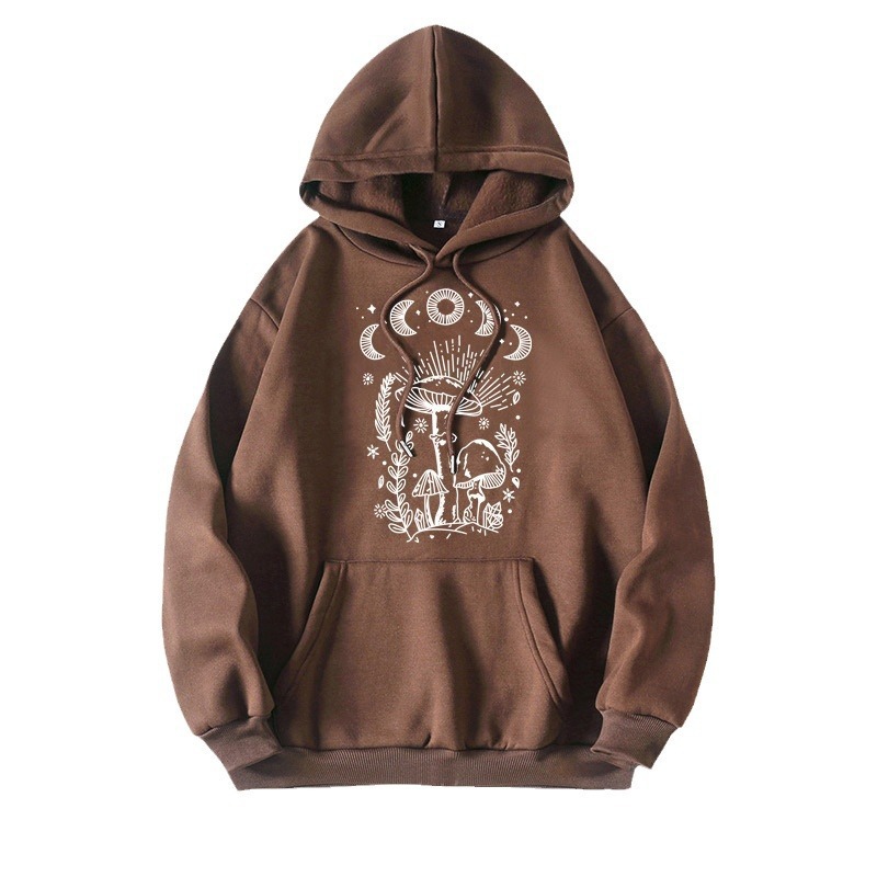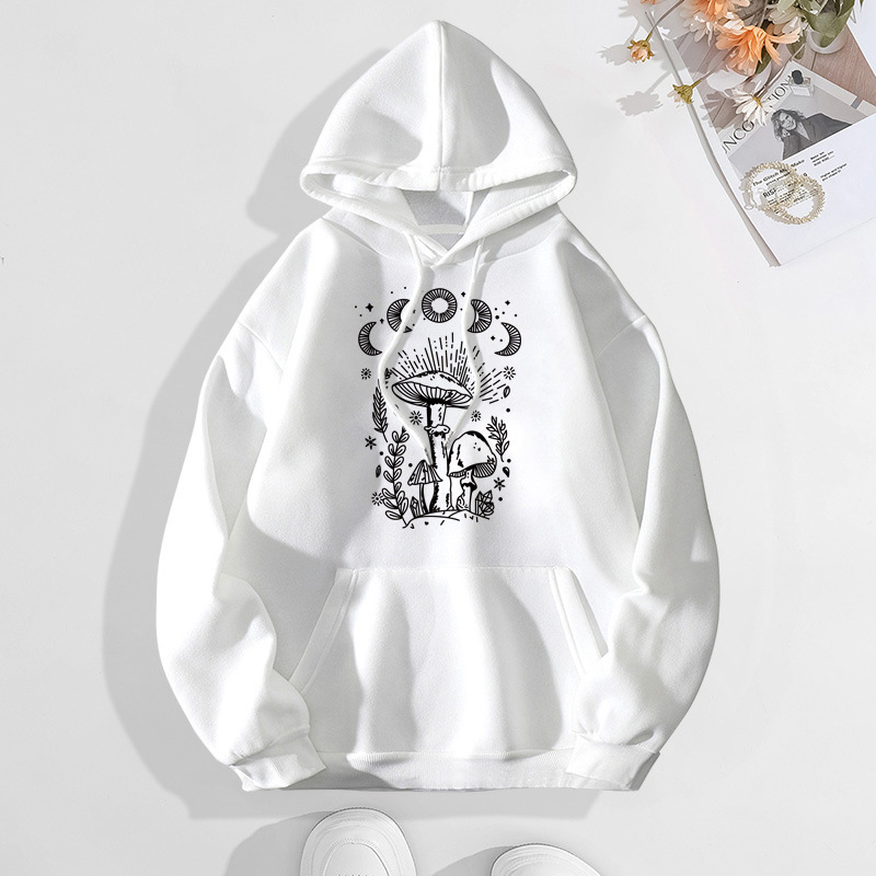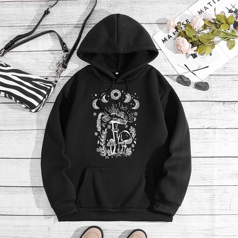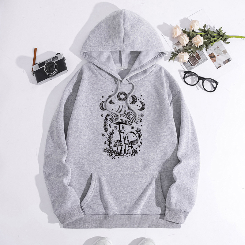 Printed Heel Wrap Collar Velvet Thickened Hooded Sweatshirt