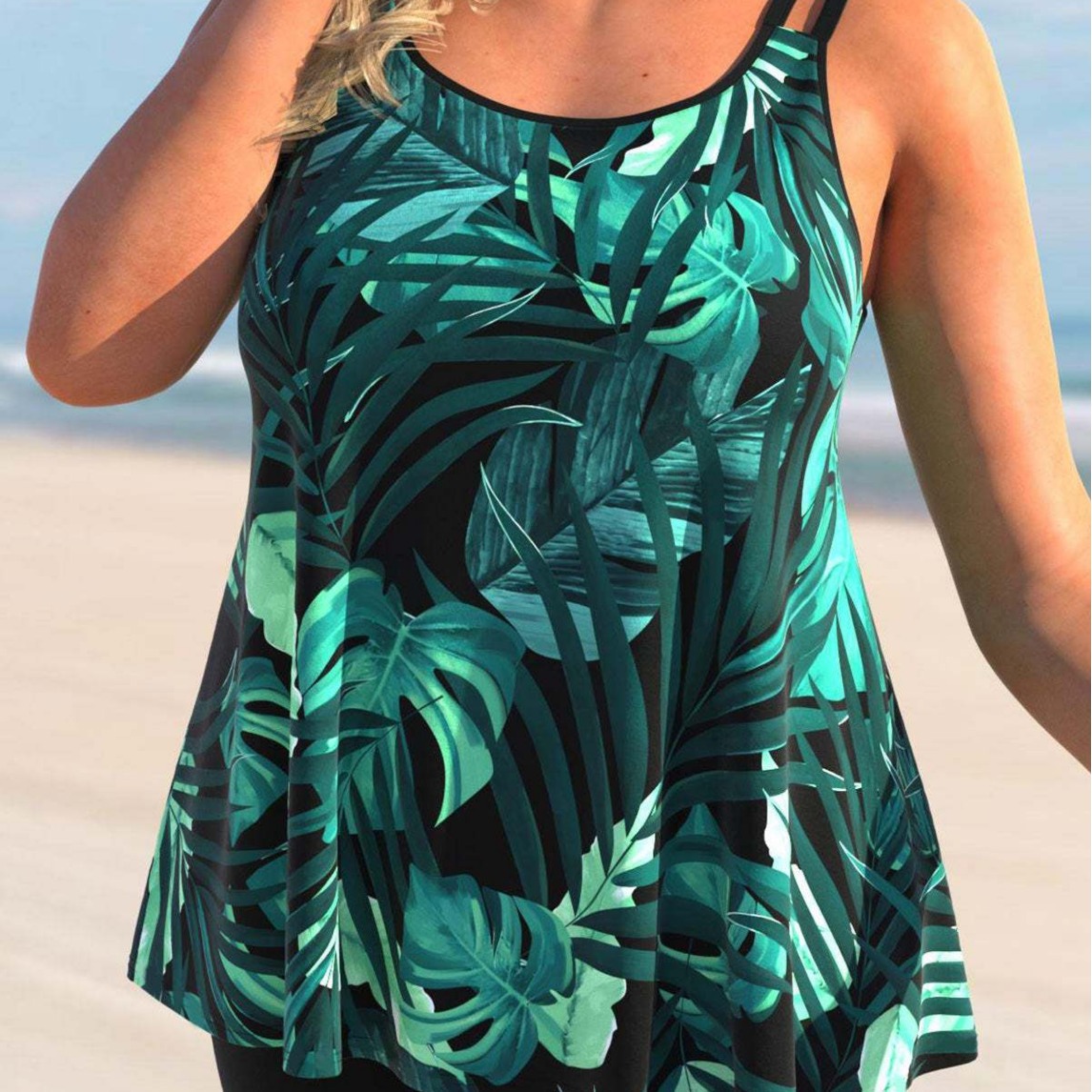 Printed High Waist Skirt Boxer Conservative Split Swimsuit