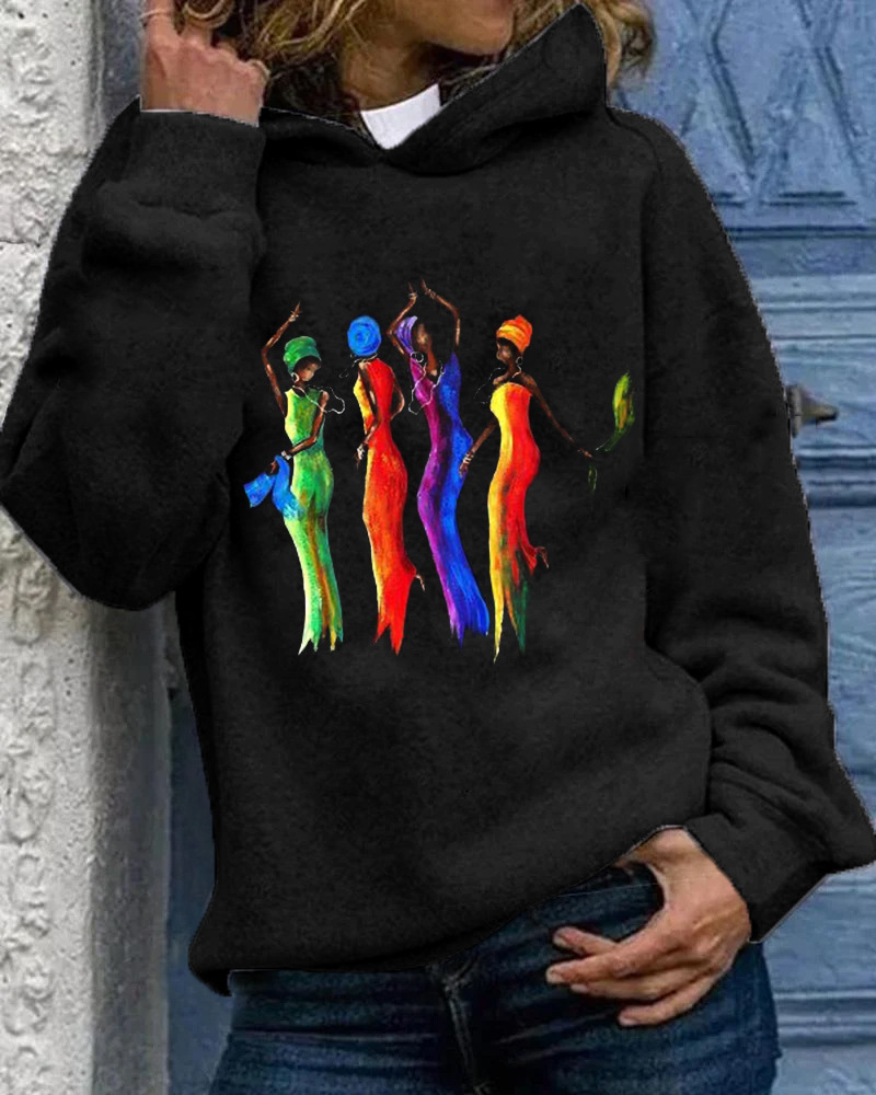 Printed Hooded rope girl's sweater autumn and winter