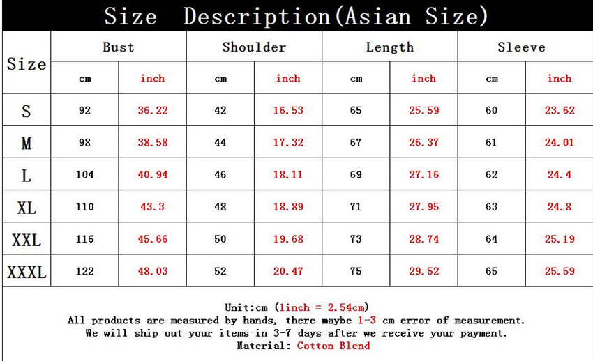 1. Asian sizes are 1 to 2 sizes smaller than European and American people. Choose the larger size if your size between two sizes. Please allow 2-3cm differences due to manual measurement.