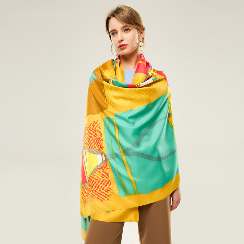 Printed knitted color block women's scarf