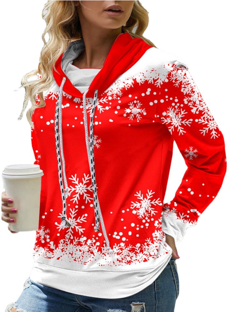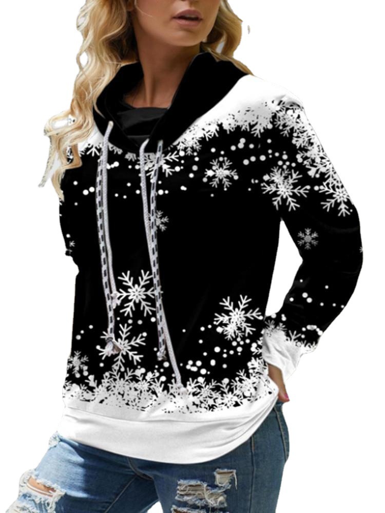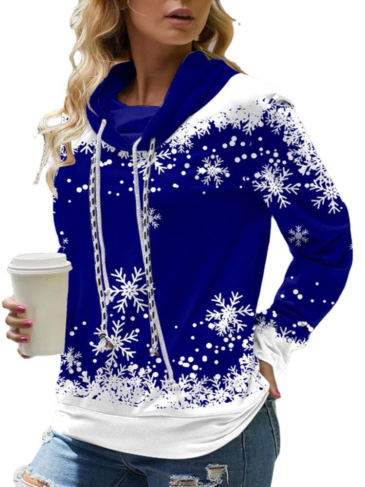 Printed Long Sleeve Double Drawstring Turtleneck Ladies Sweatshirt