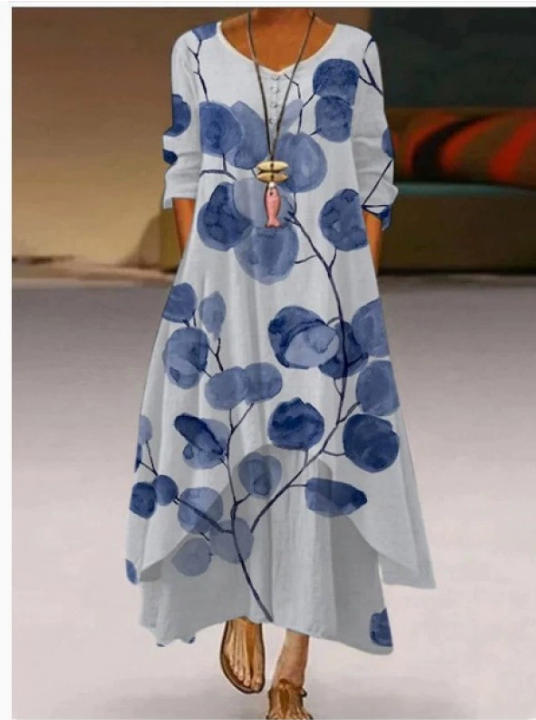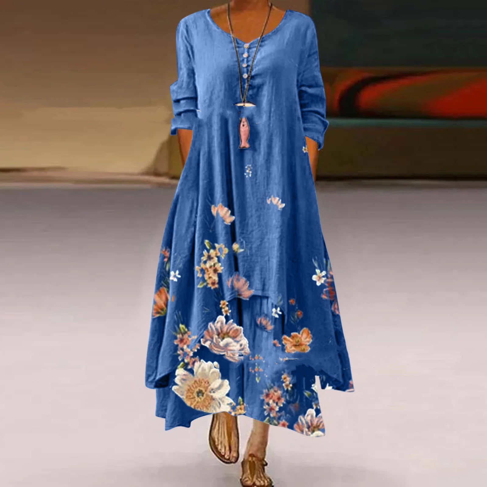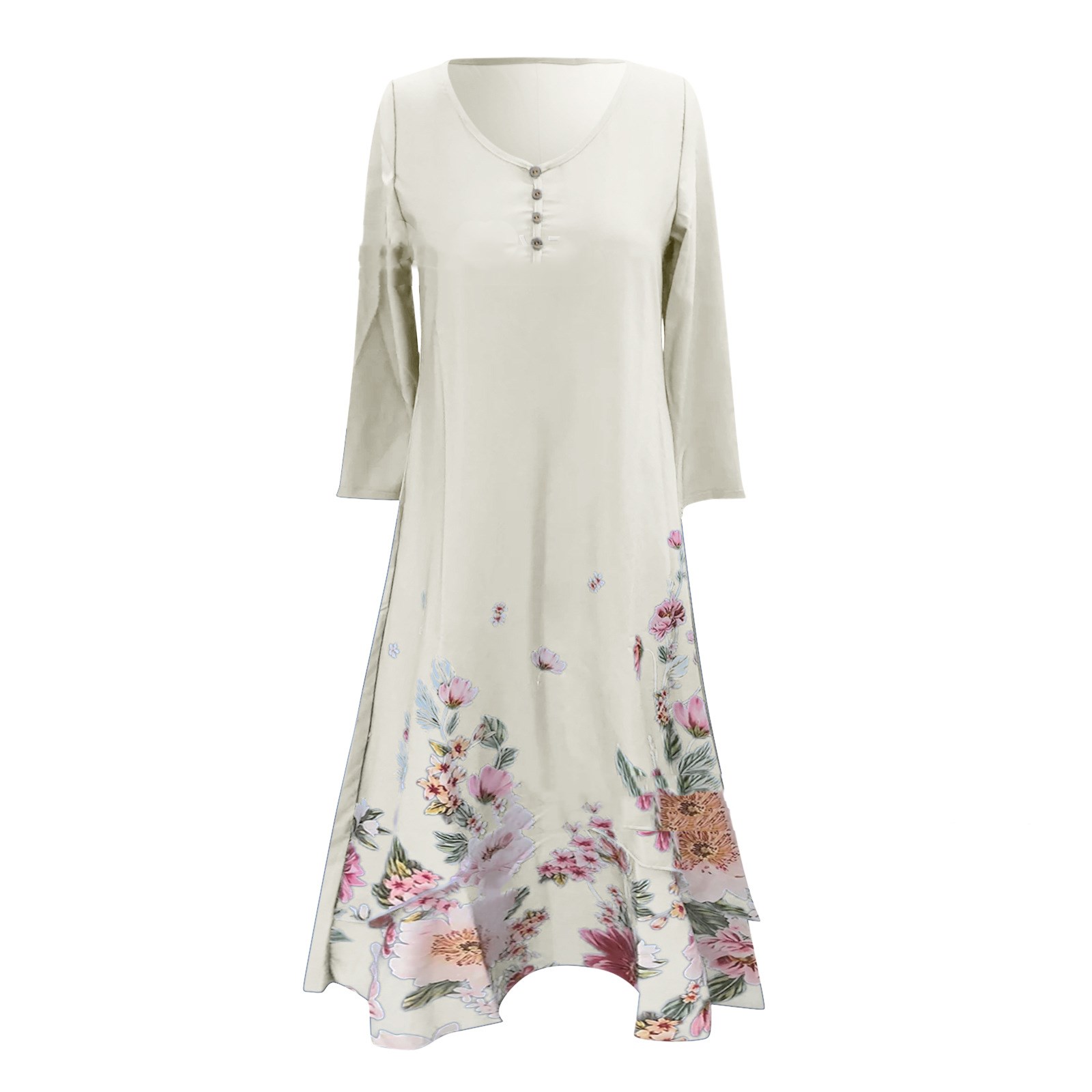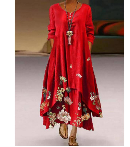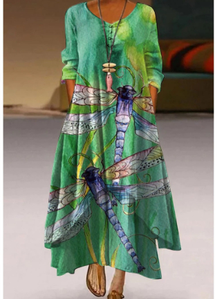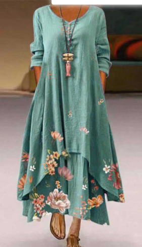 Printed Long-sleeved Loose-fitting Commuter Dress