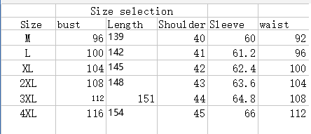 Size: M, L, XL, XXL, XXXL, XXXXL