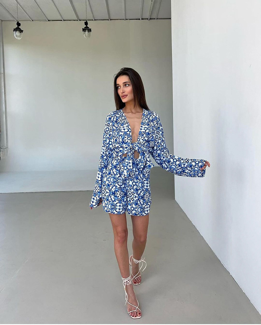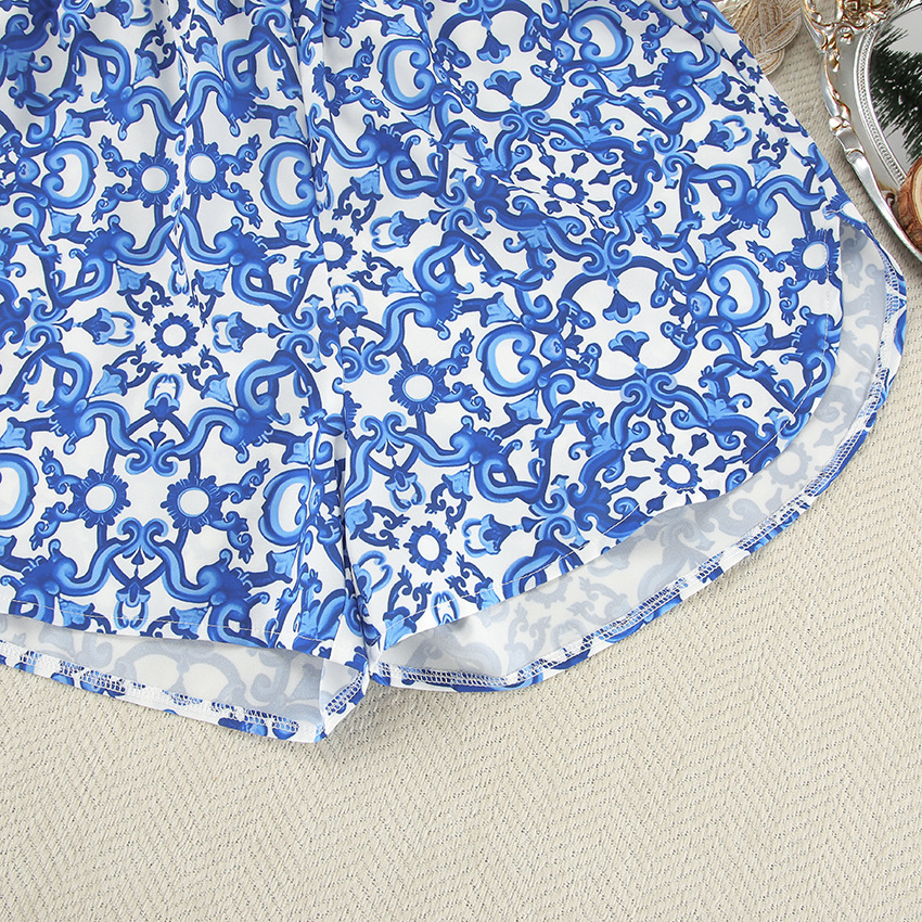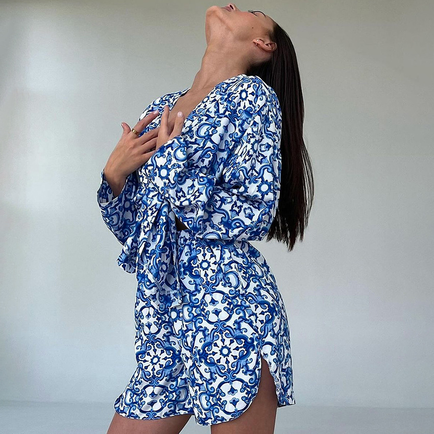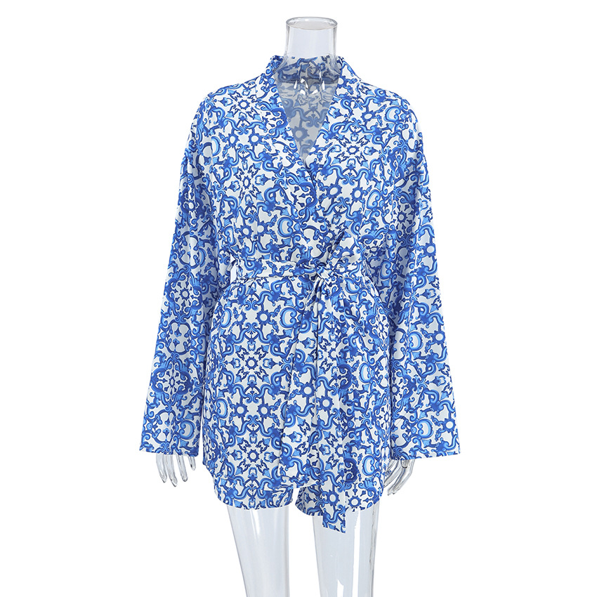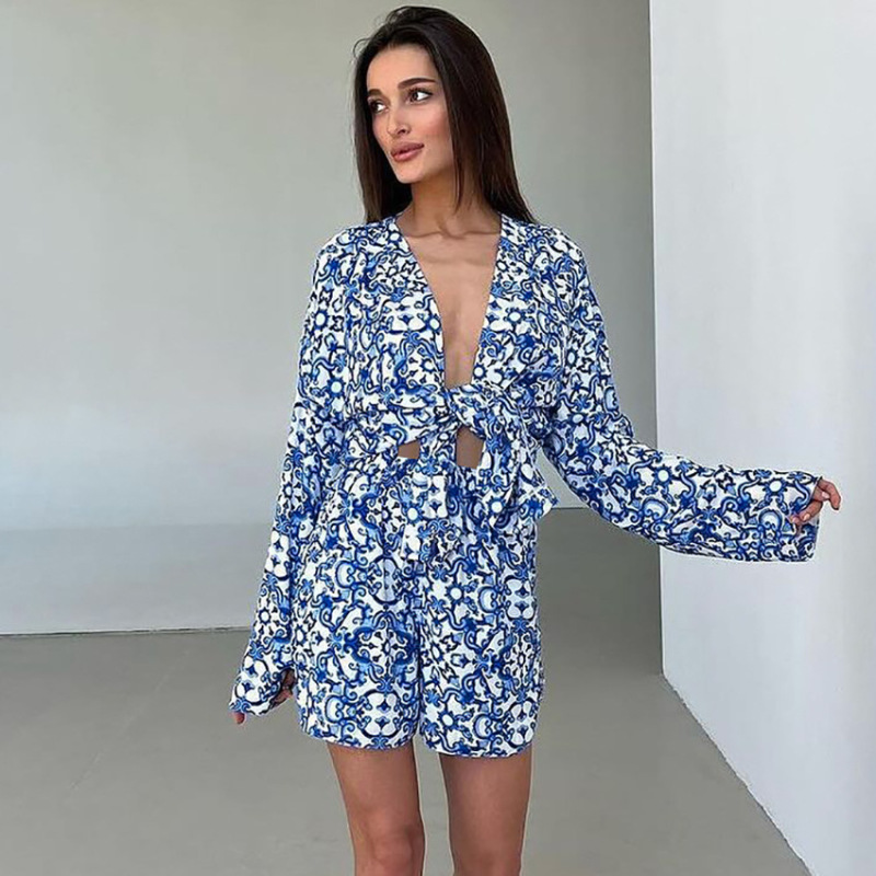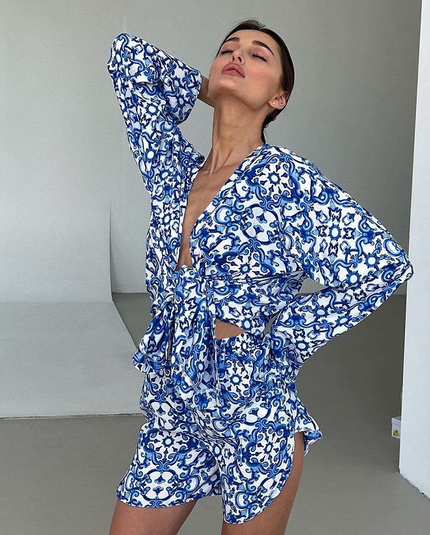 Printed Loose Cozy Long-Sleeve Shorts Pajama Set