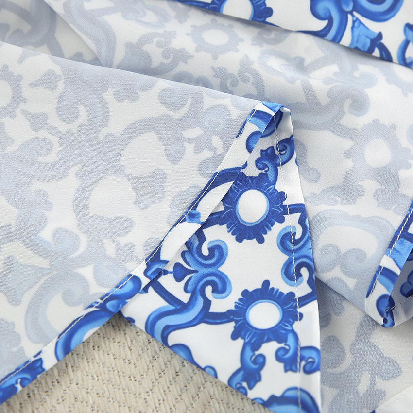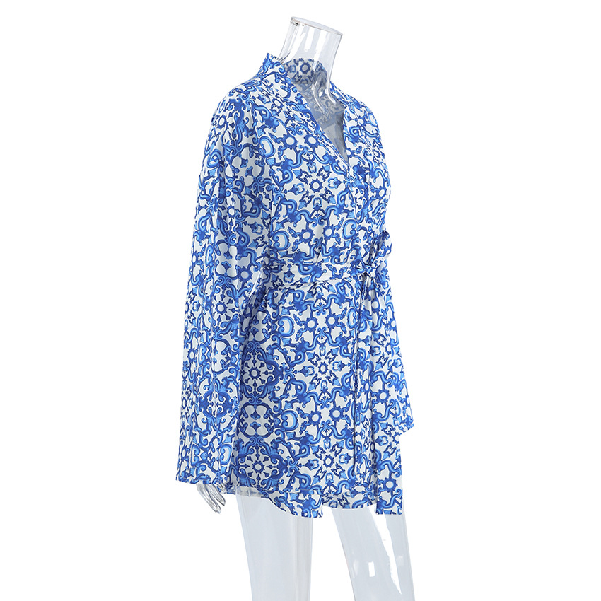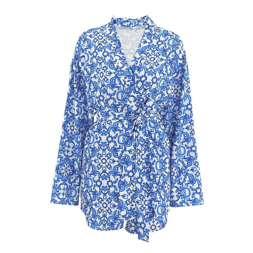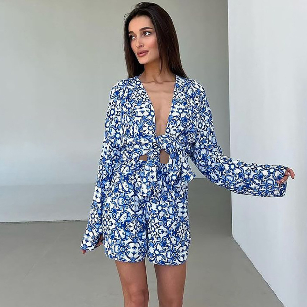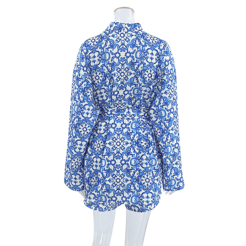Printed Loose Cozy Long-Sleeve Shorts Pajama Set