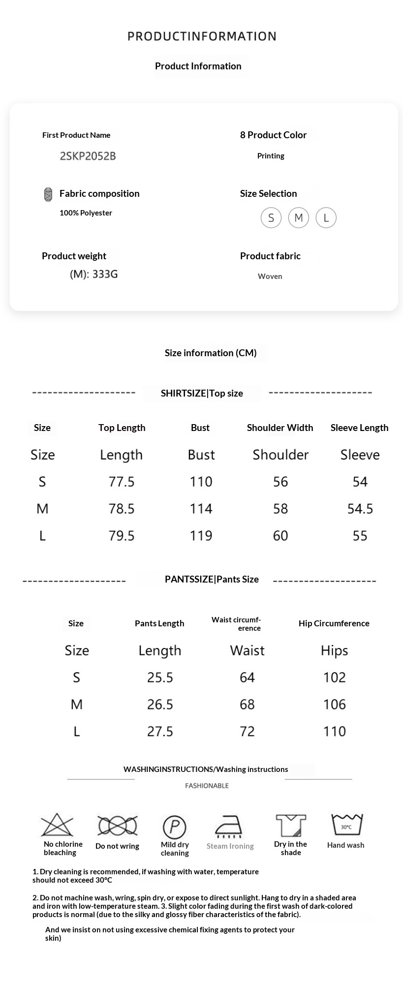 Sizes: S, M, L