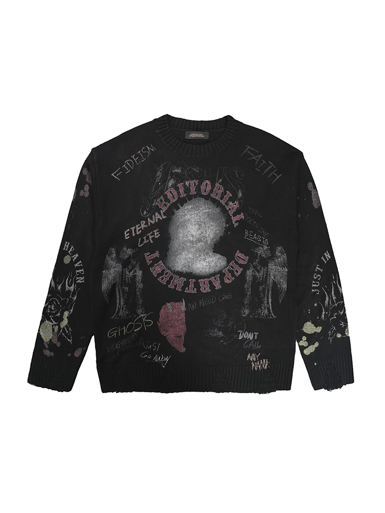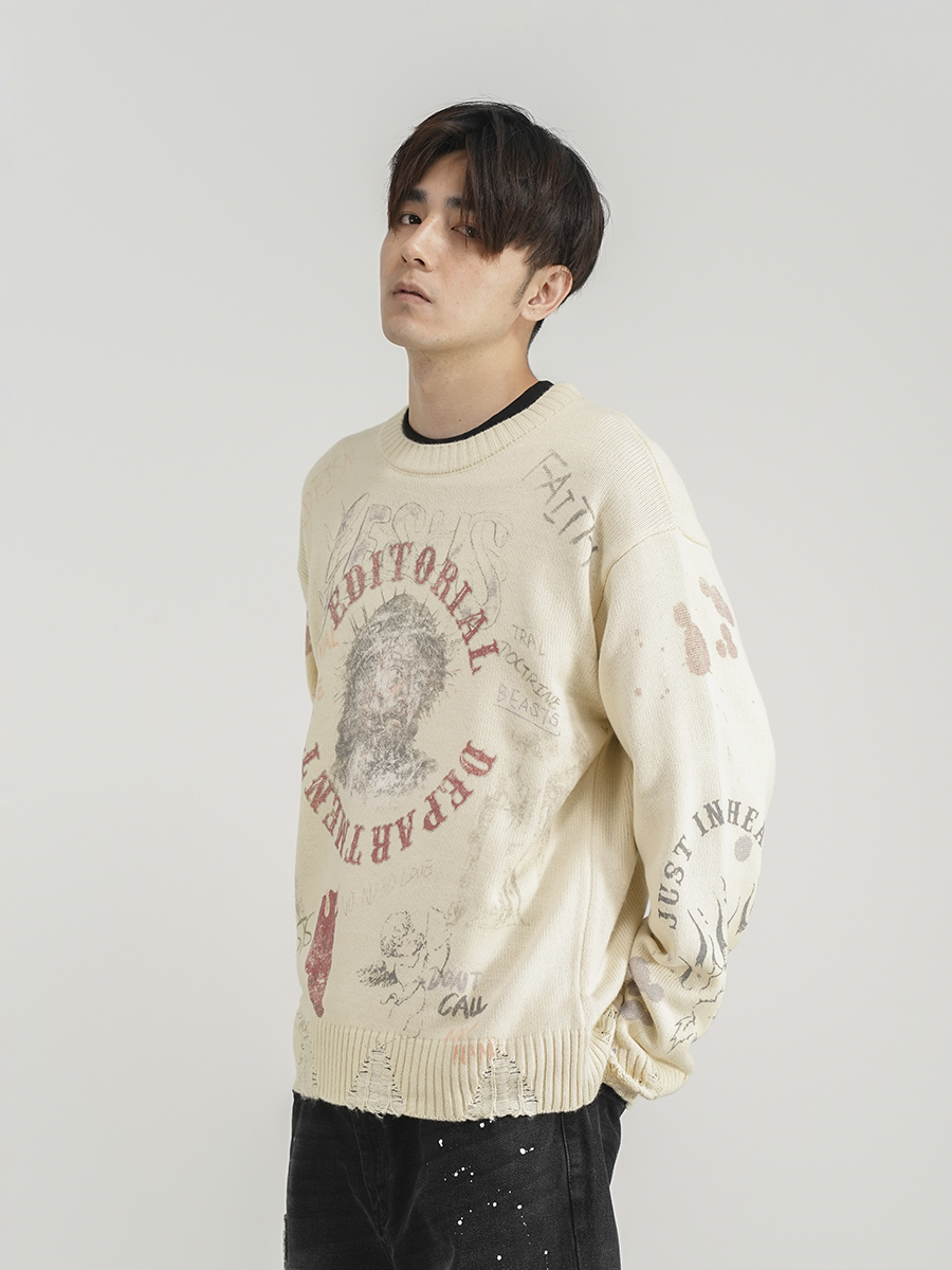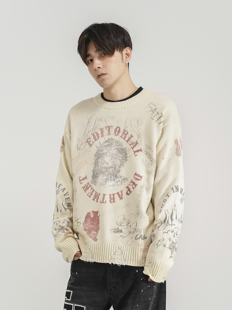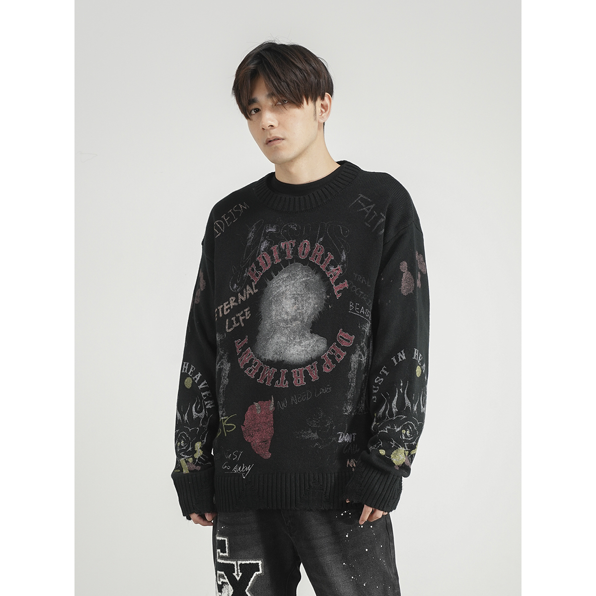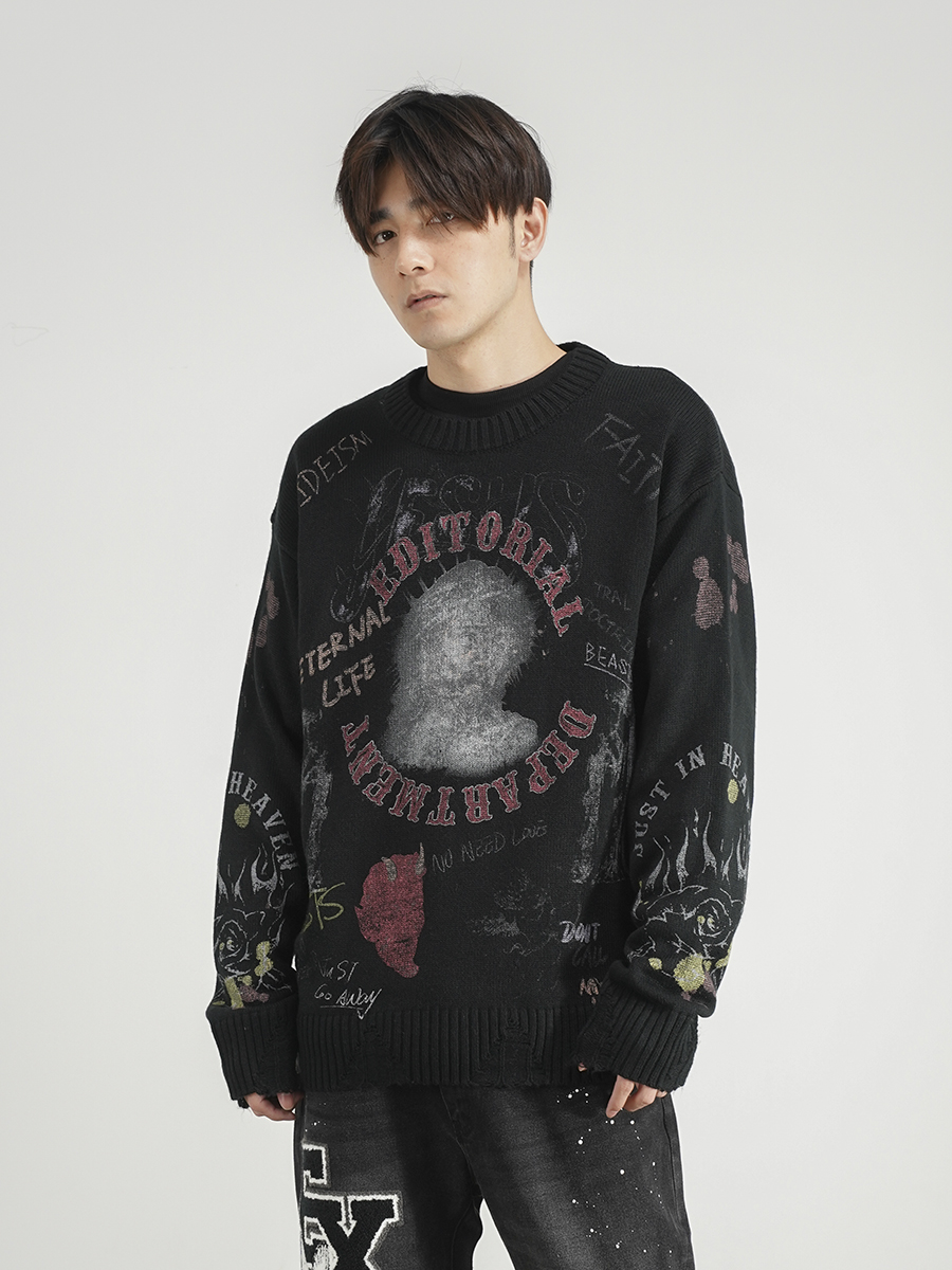 Printed Loose Pullover Men's And Women's National Trend Knit Sweater