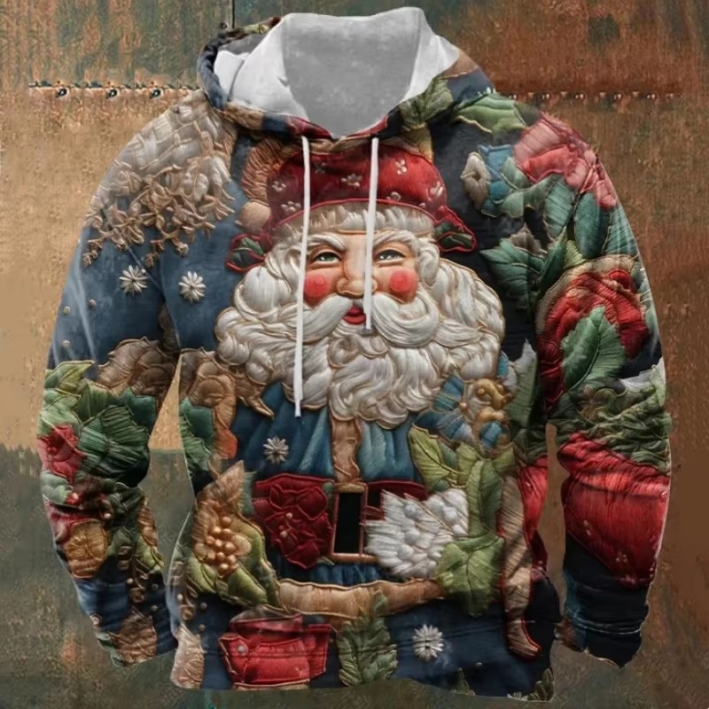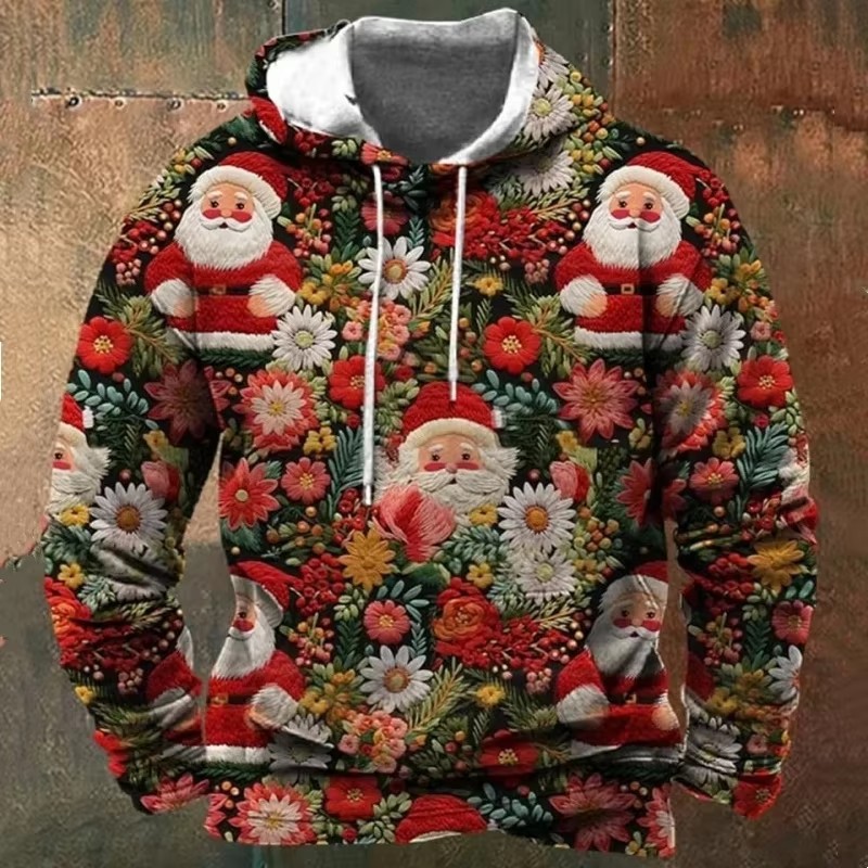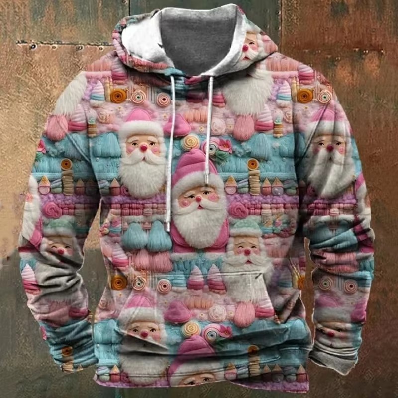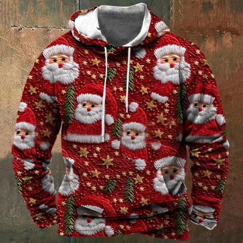 Printed men's cartoon hooded Christmas sweater