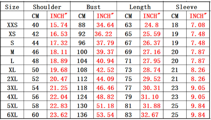 Size: S, M, L, XL, 2XL, 3XL, 4XL, 5XL, XXS, XS, 100, 110, 120, 130, 140, 150, 160
