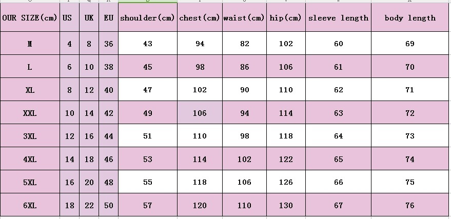 Size: XS,S,M,L,XL,2XL,3XL,4XL,5XL,6XL