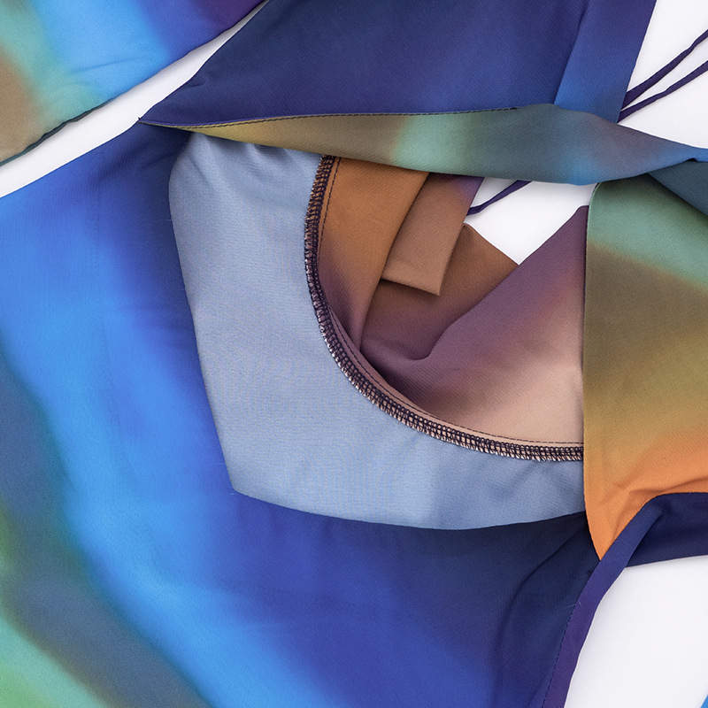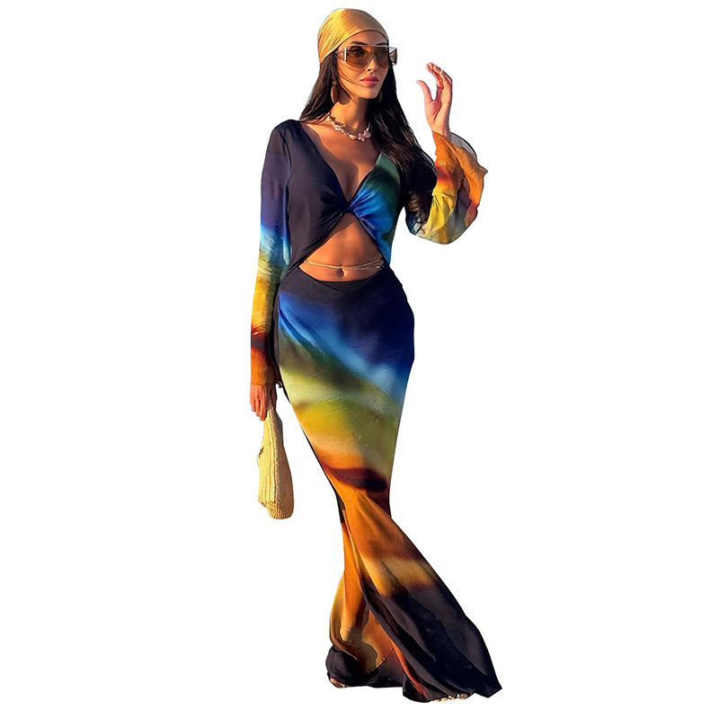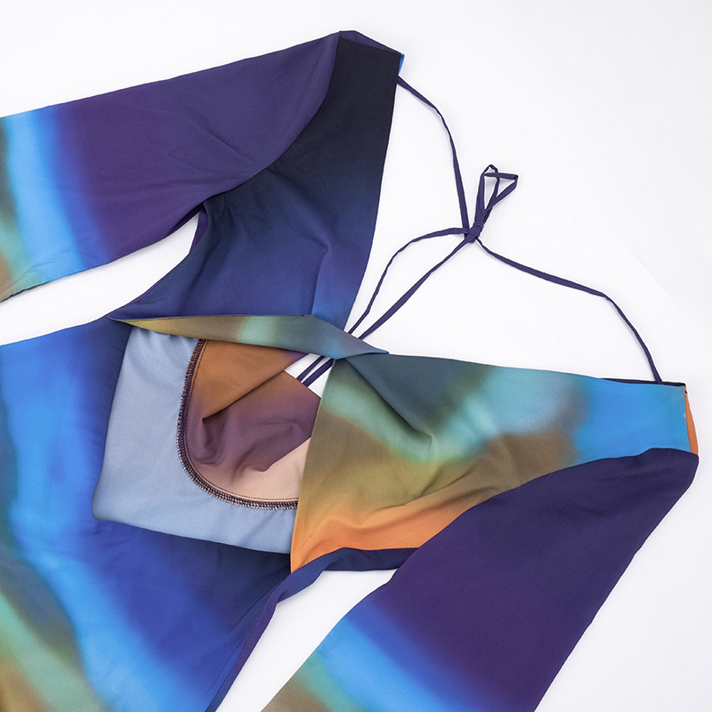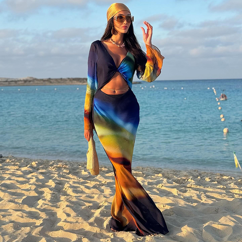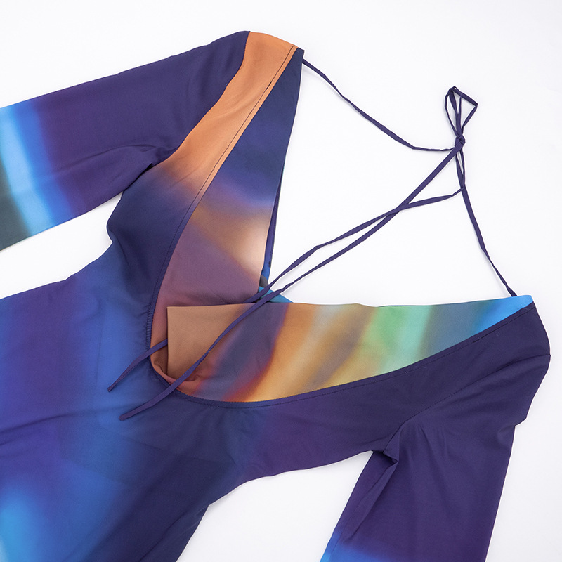 Printed Mesh Long-Sleeve Maxi Dress With Open Back And Tie Details For Women