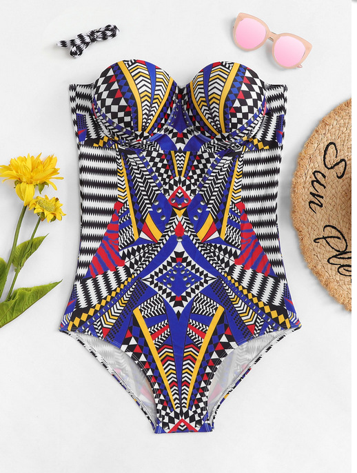 Printed one-piece swimsuit women Europe and America