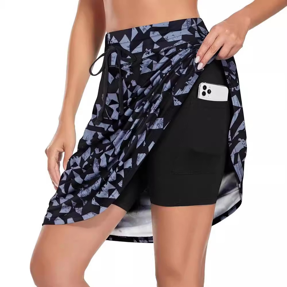 Printed Pocket Fake Two-piece Shorts Women's Clothing