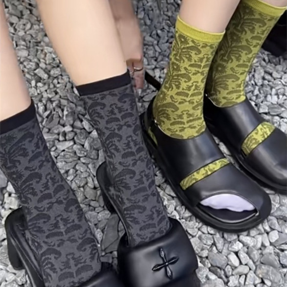 Printed Roll Grass Pattern Mid-calf Socks