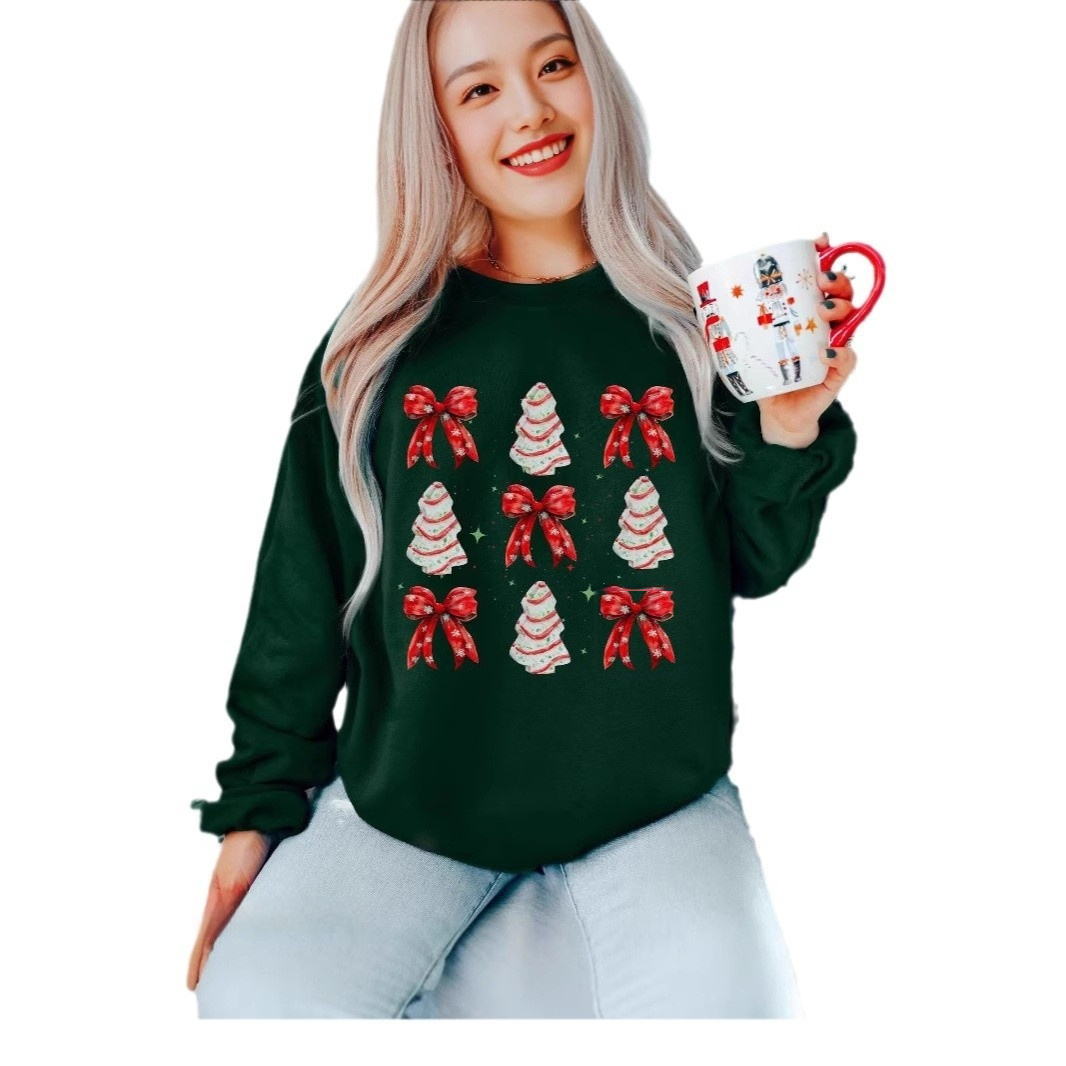 Printed Round Neck Long Sleeve Pullover Loose Sweater Women