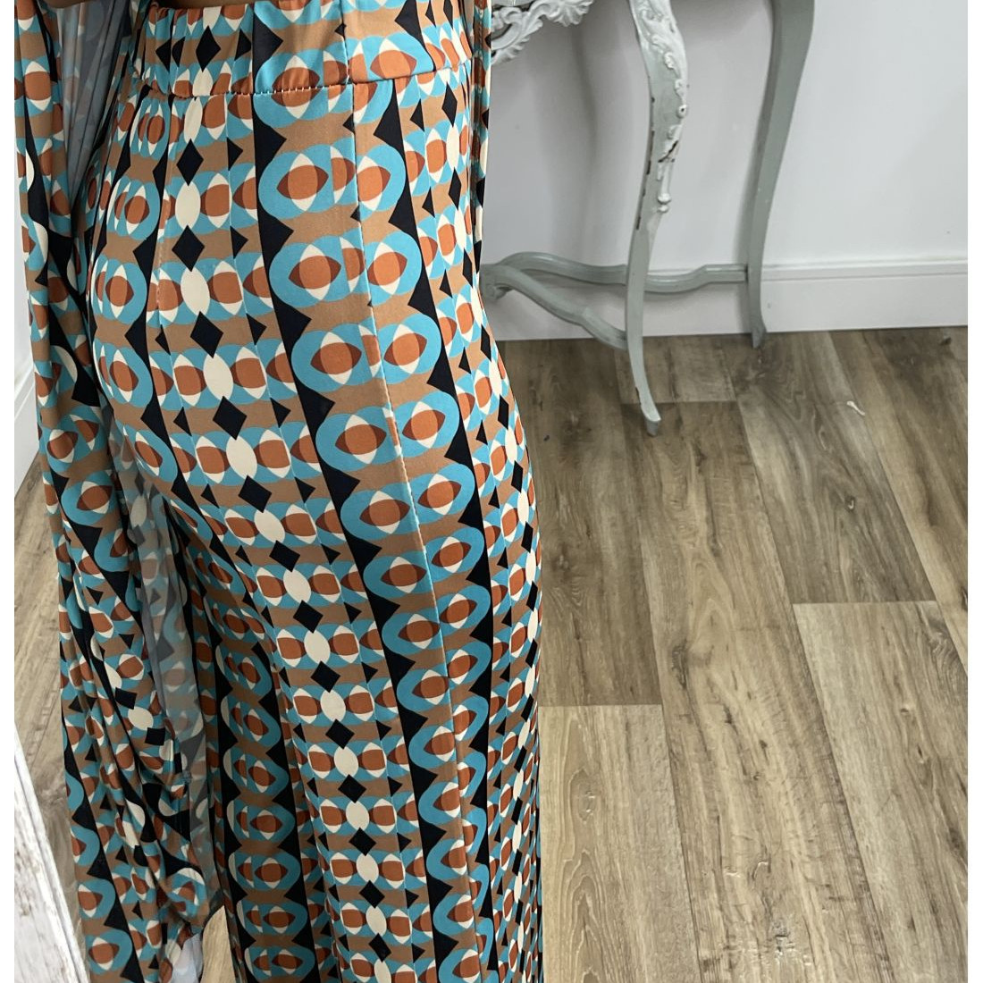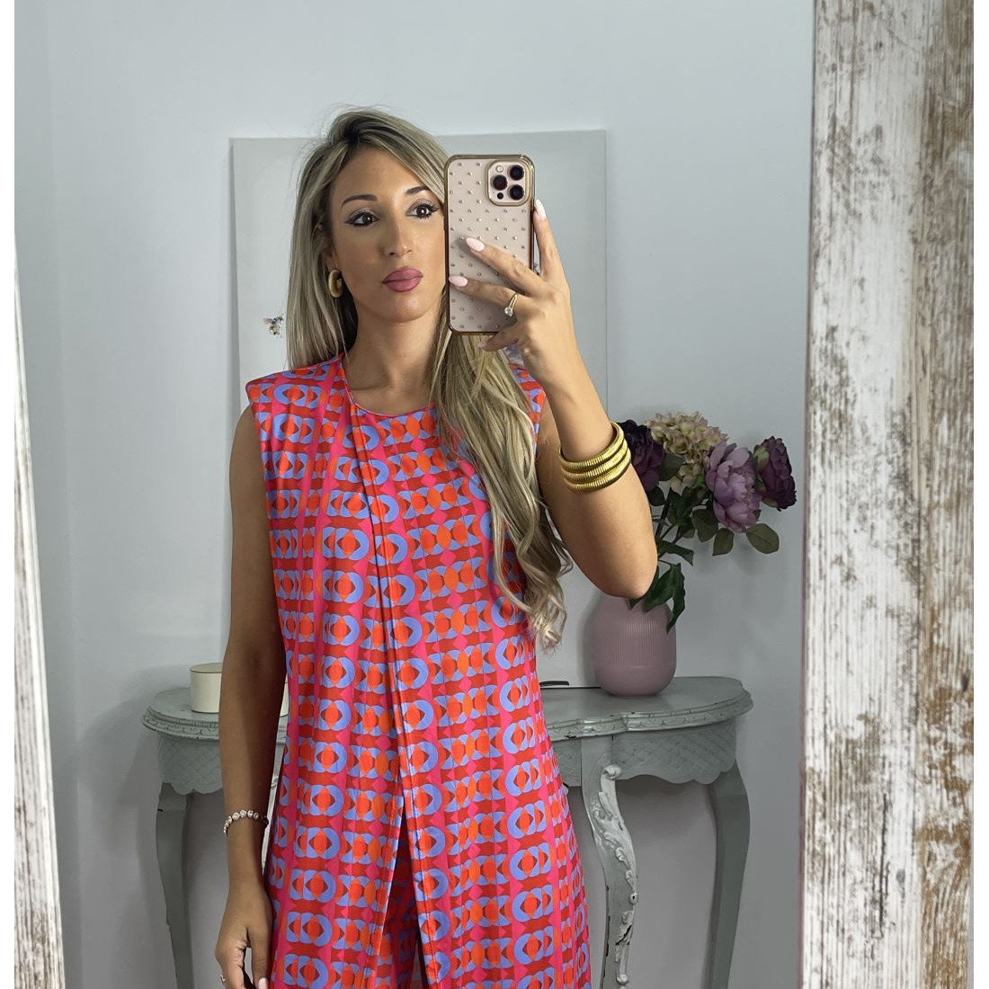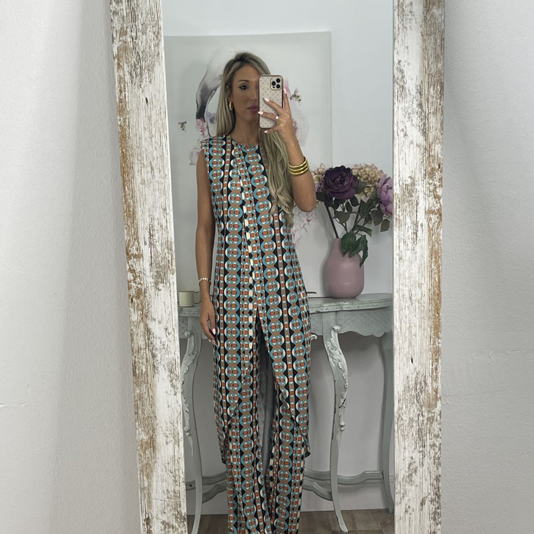 Printed Round Neck Sleeveless Trousers Suit