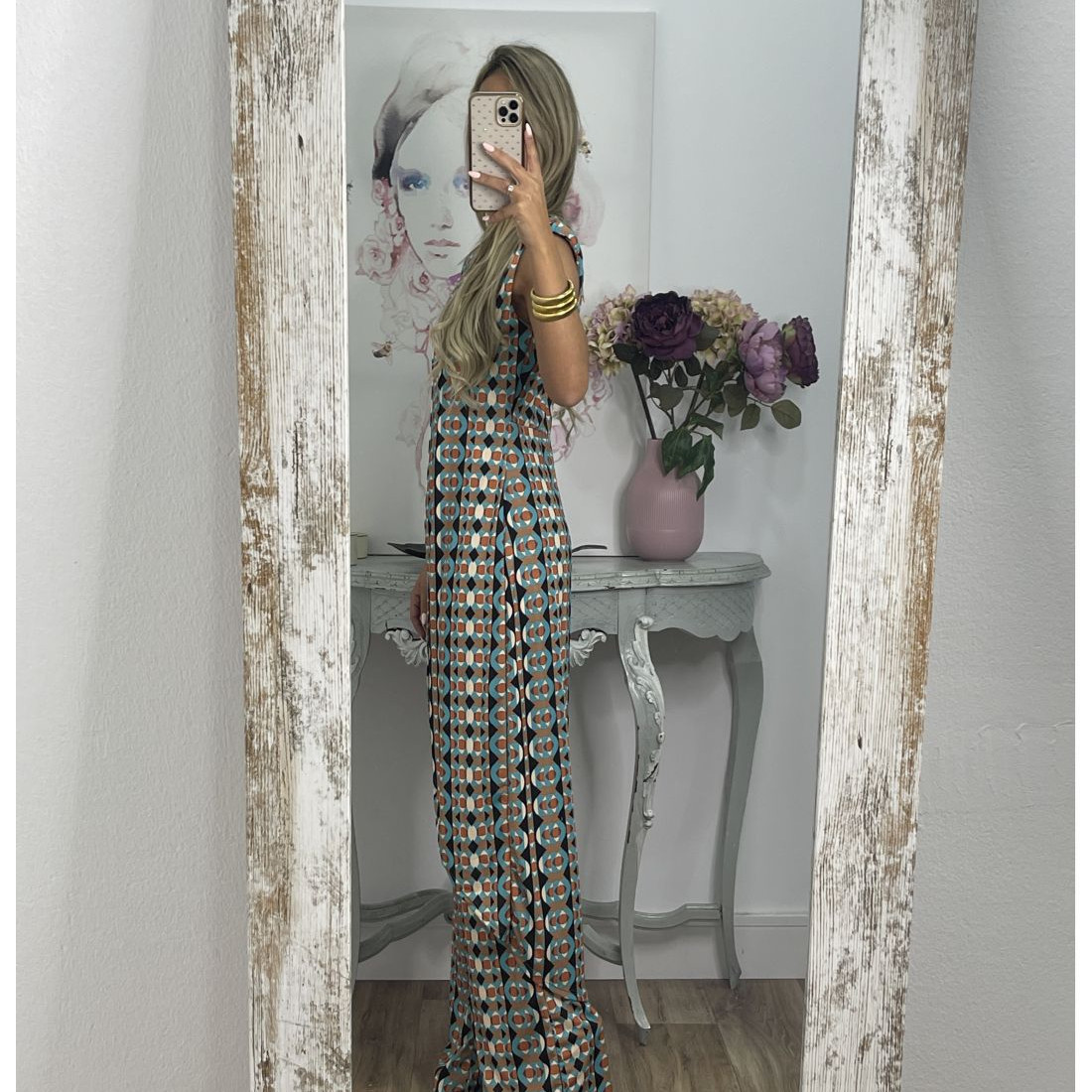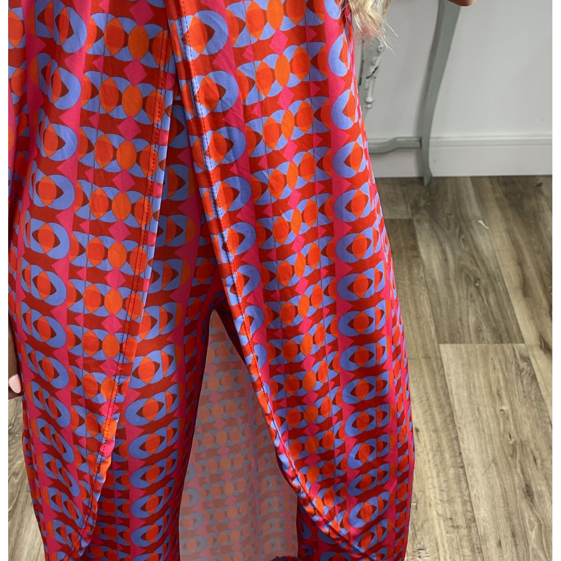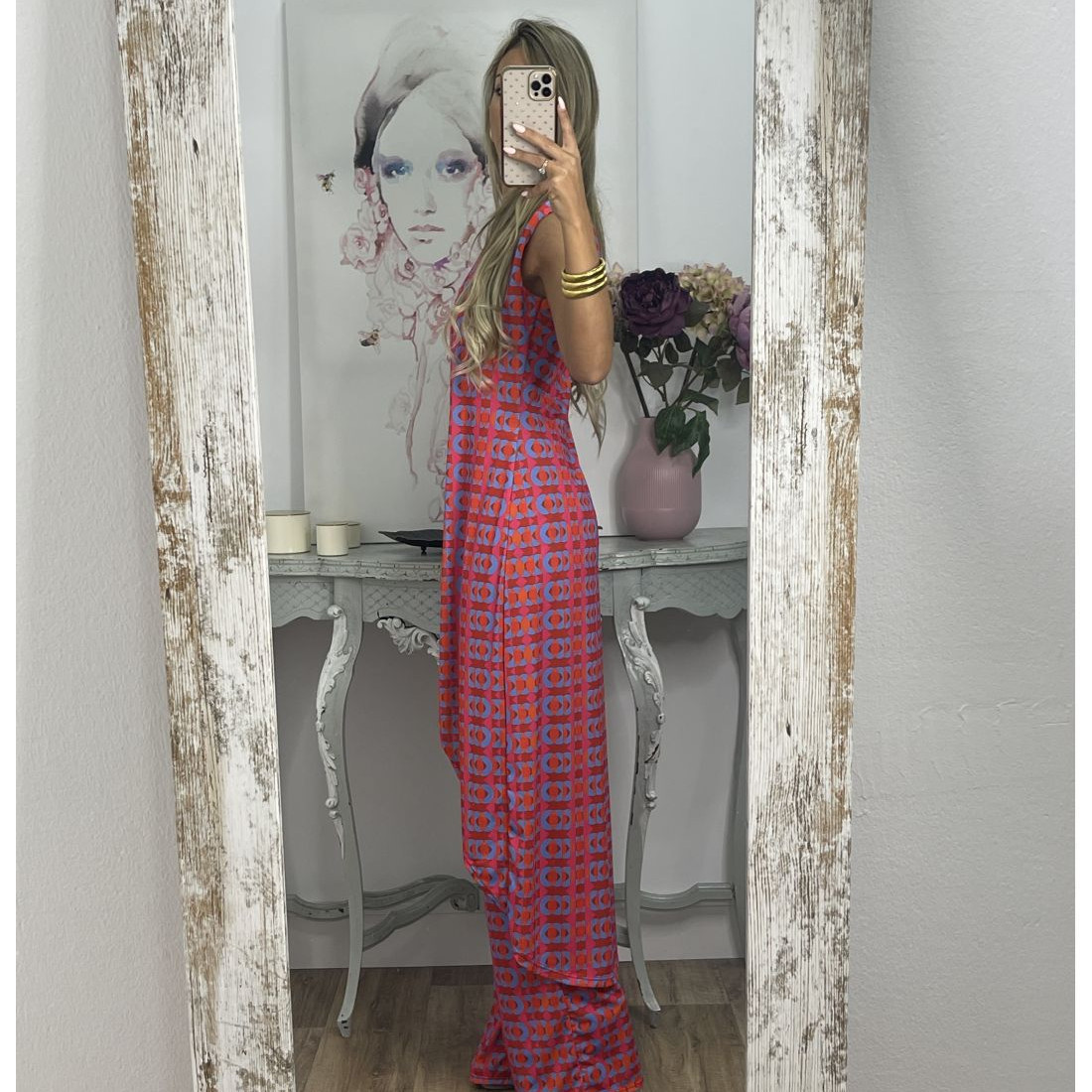 Printed Round Neck Sleeveless Trousers Suit