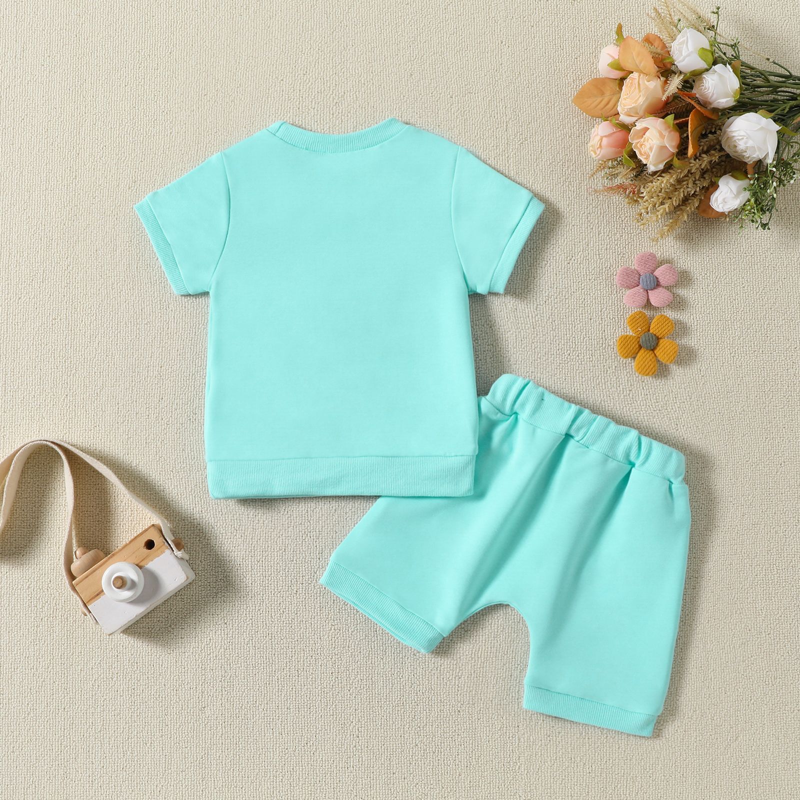 Printed Short-sleeved Top Solid Color Shorts Summer Two-piece Set