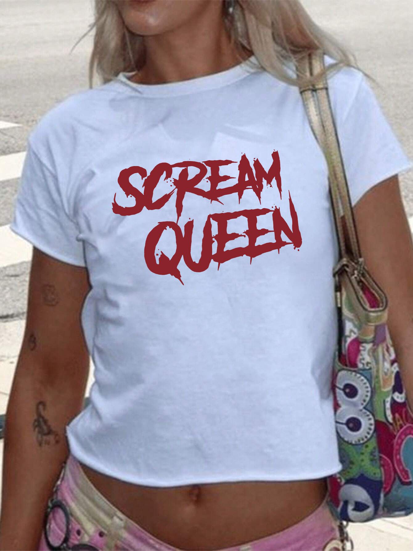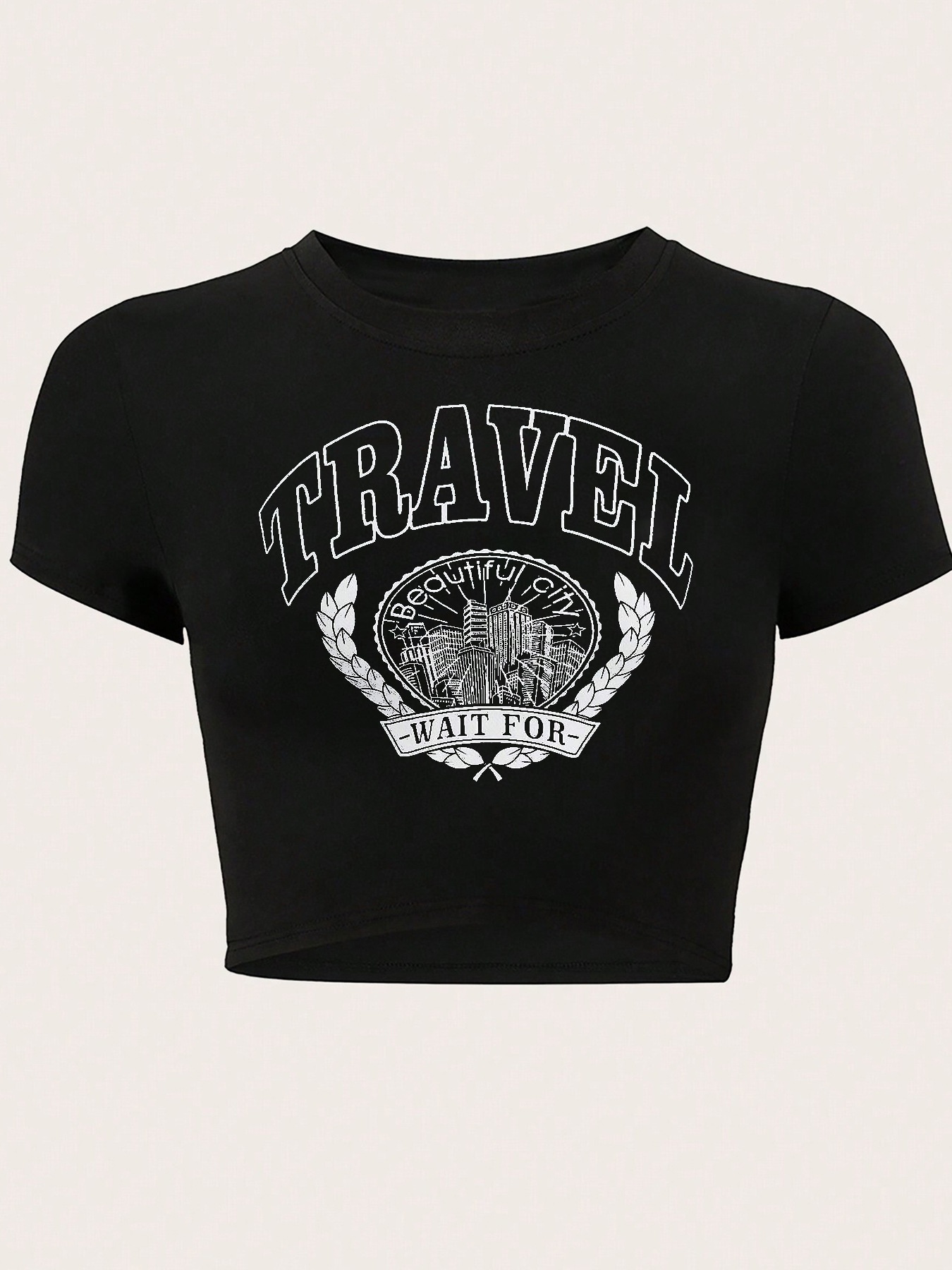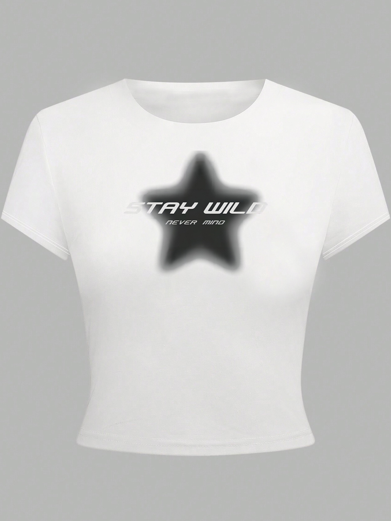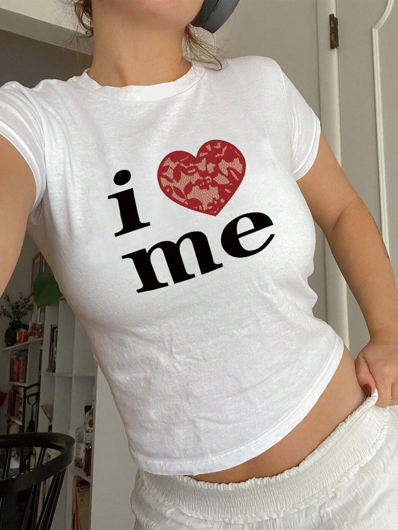 Printed Slim-fit Shoulder T-shirt Sweet And Spicy Top