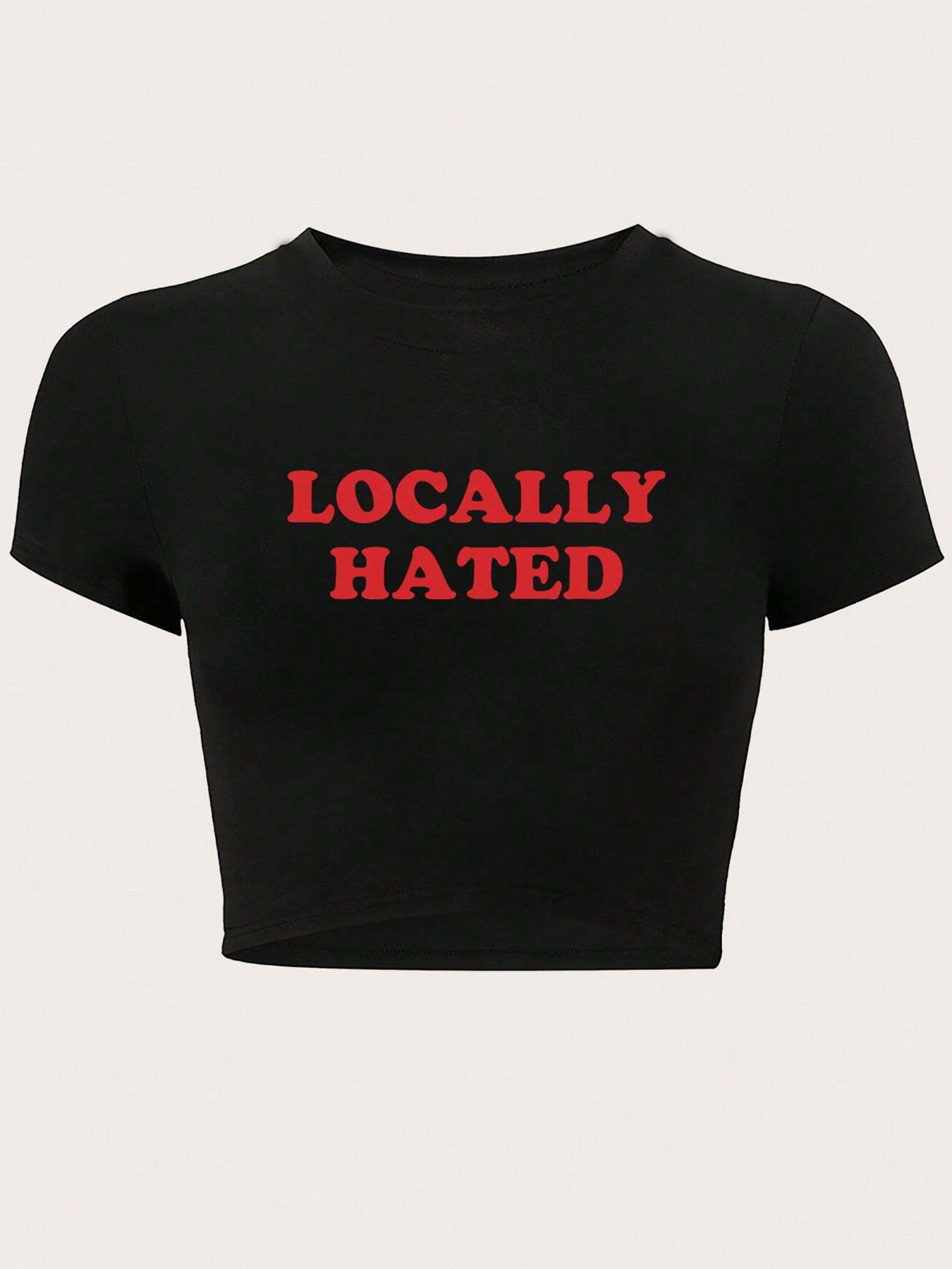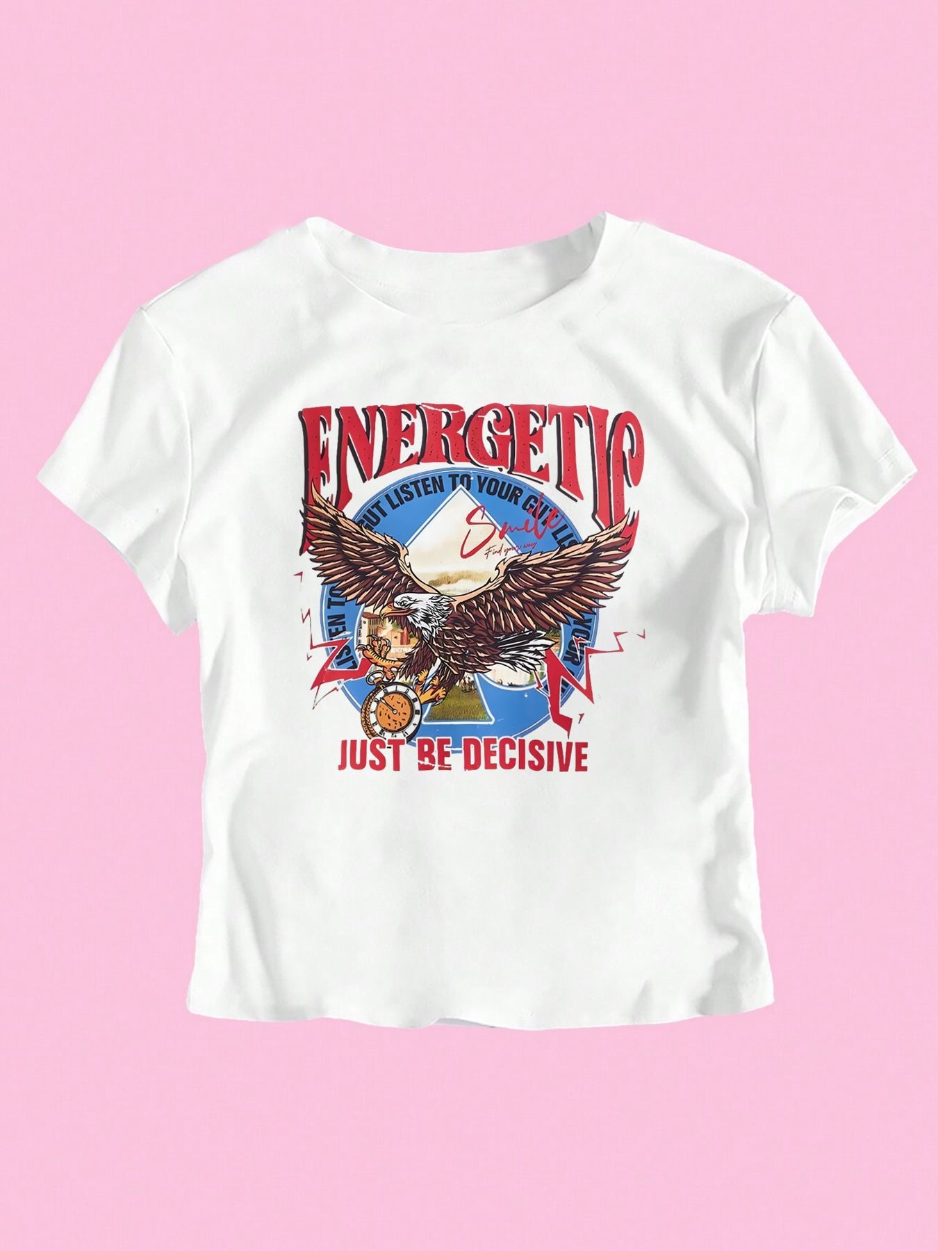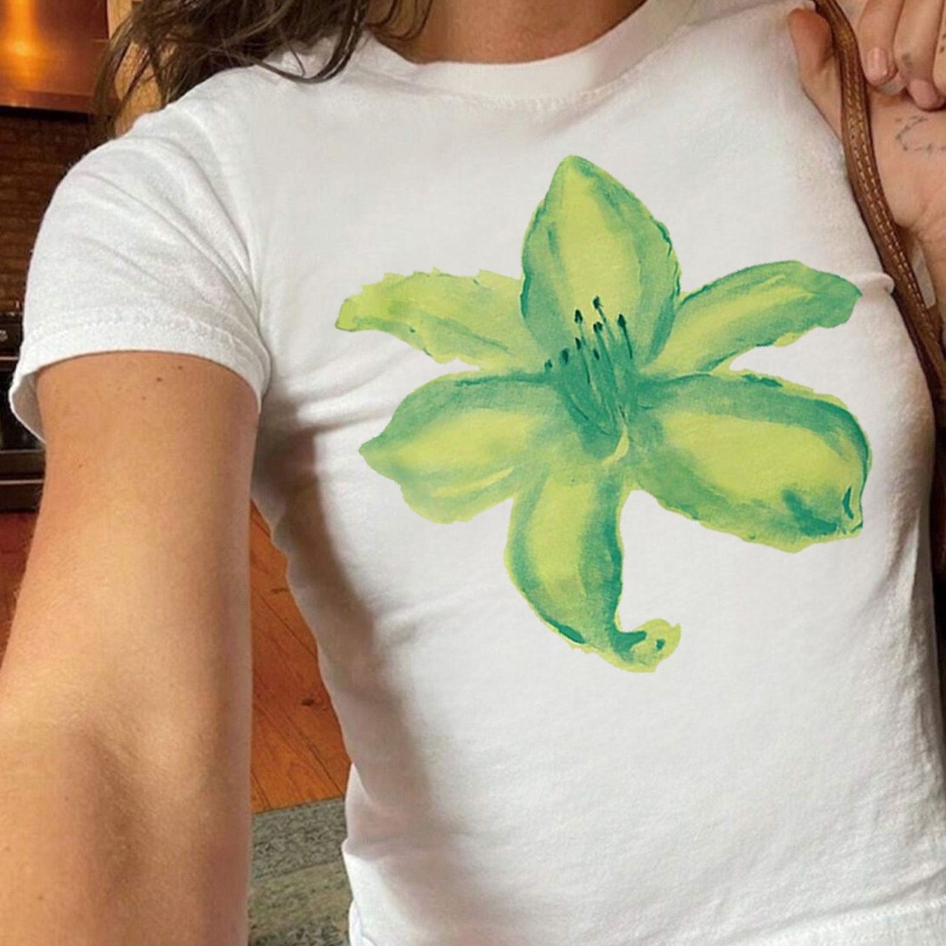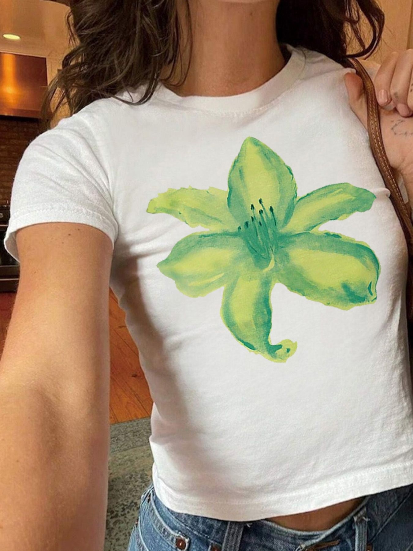 Printed Slim-fit Shoulder T-shirt Sweet And Spicy Top