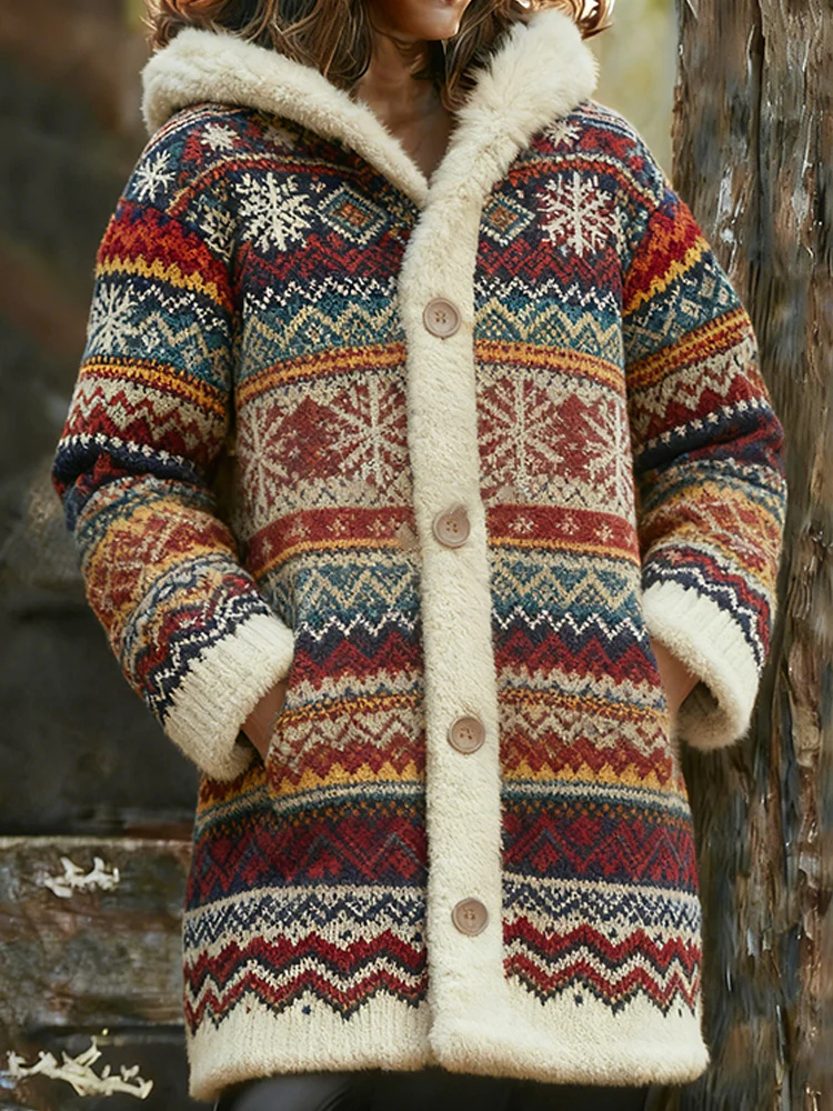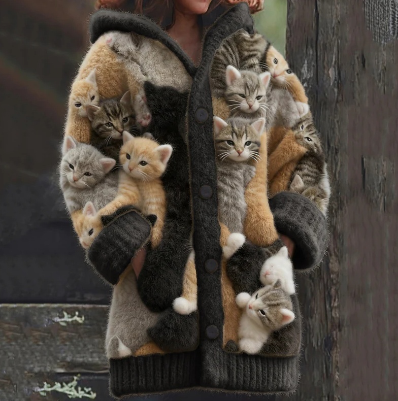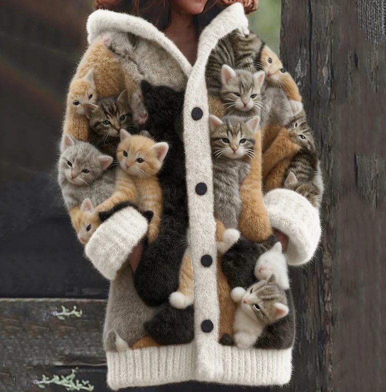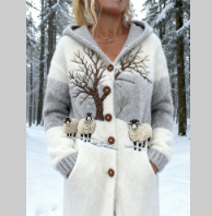Printed Soft-fitting Long-sleeved Loose-fitting Women's Round-neck Coat