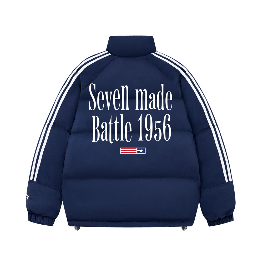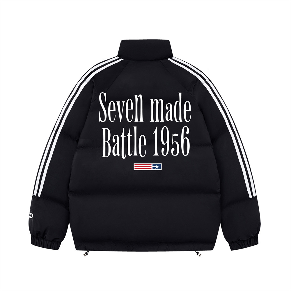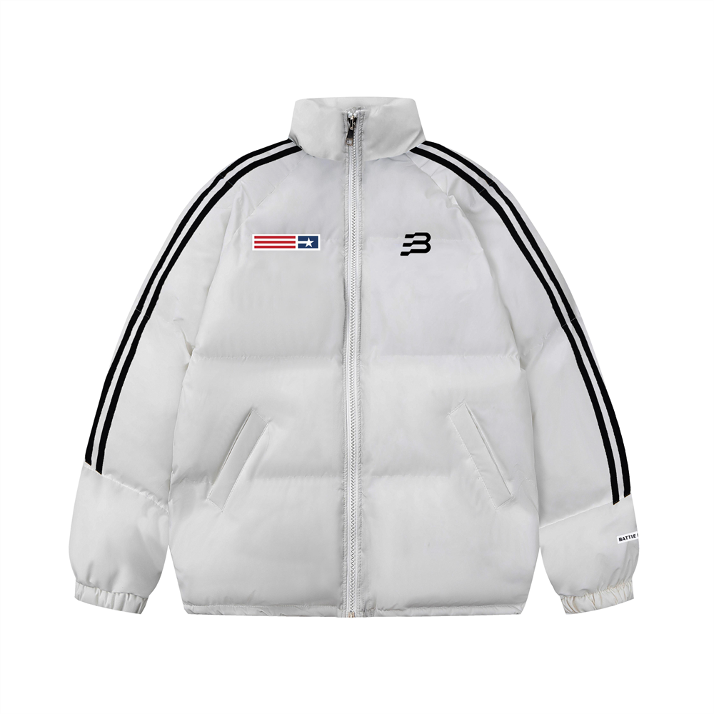 Printed Stand Collar Cotton-padded Coat Men