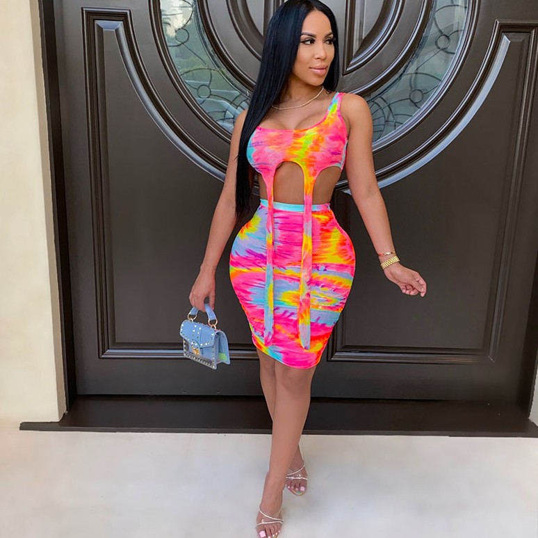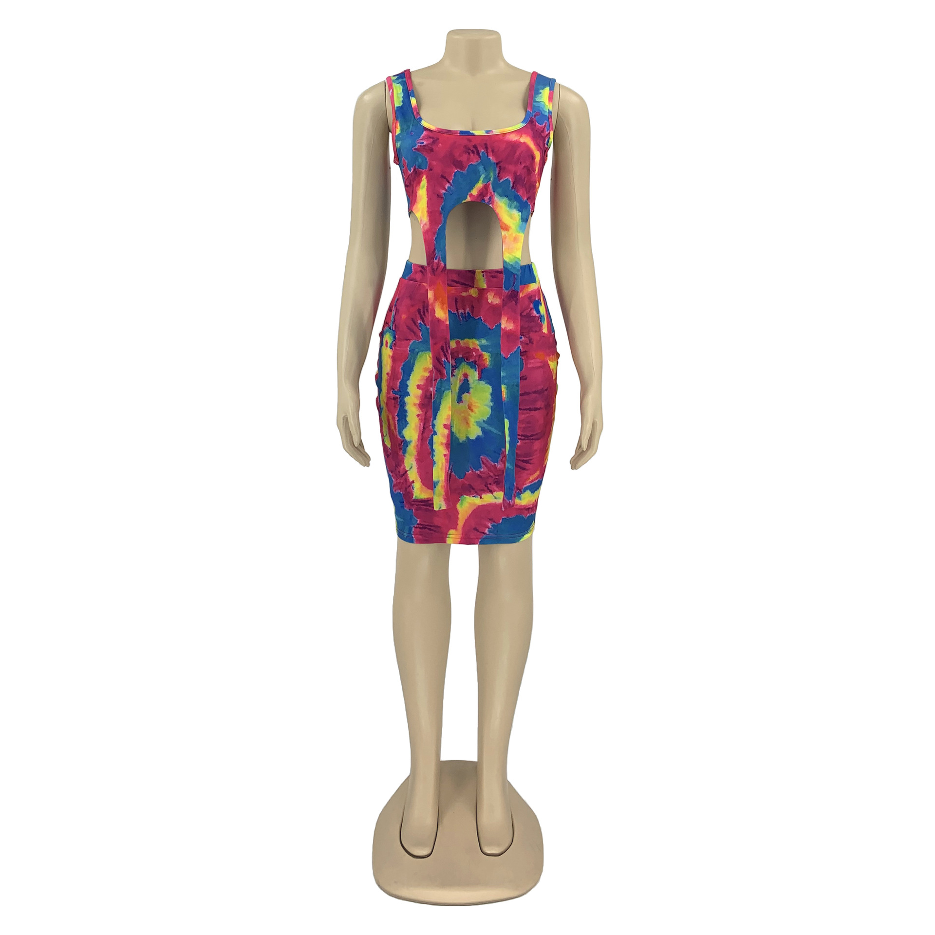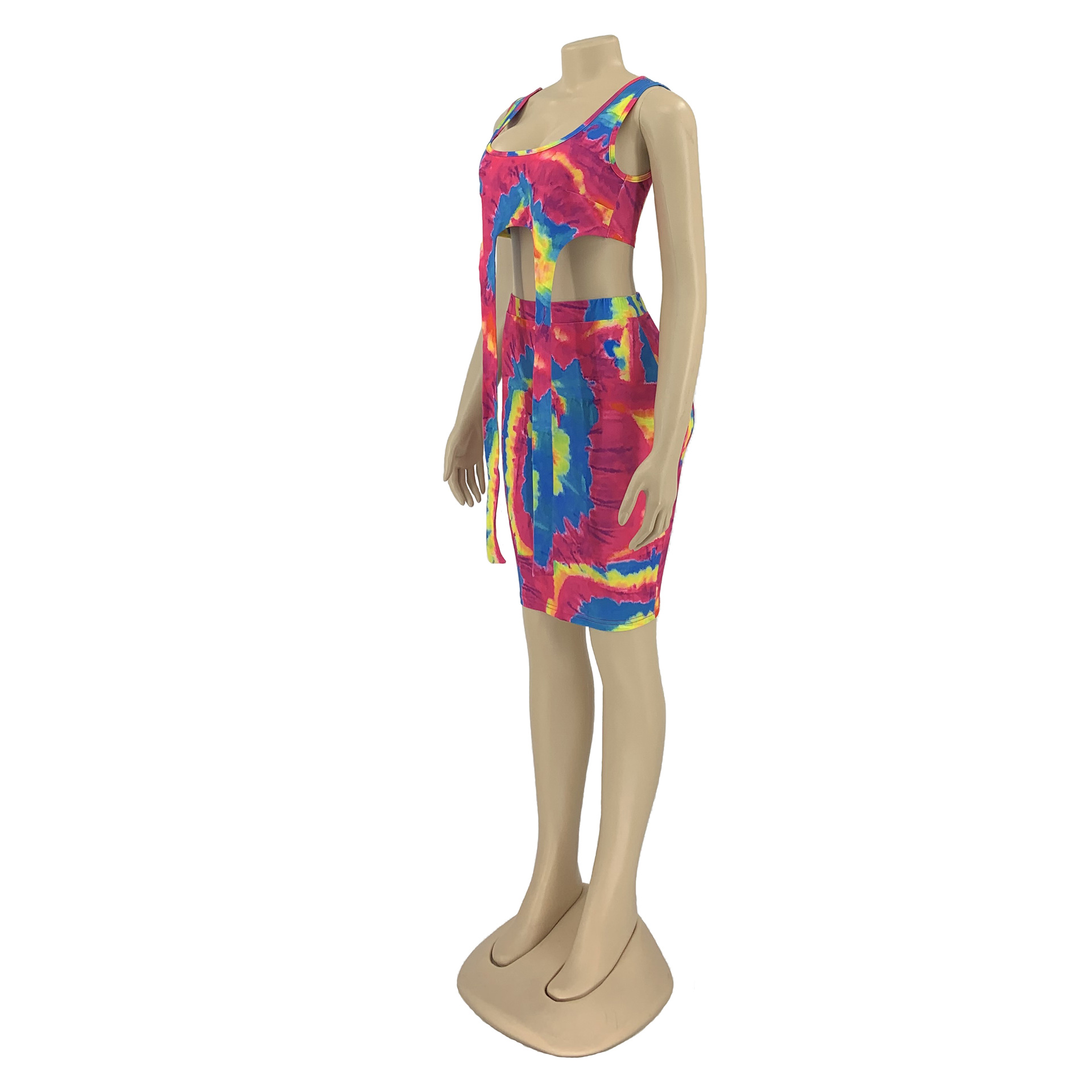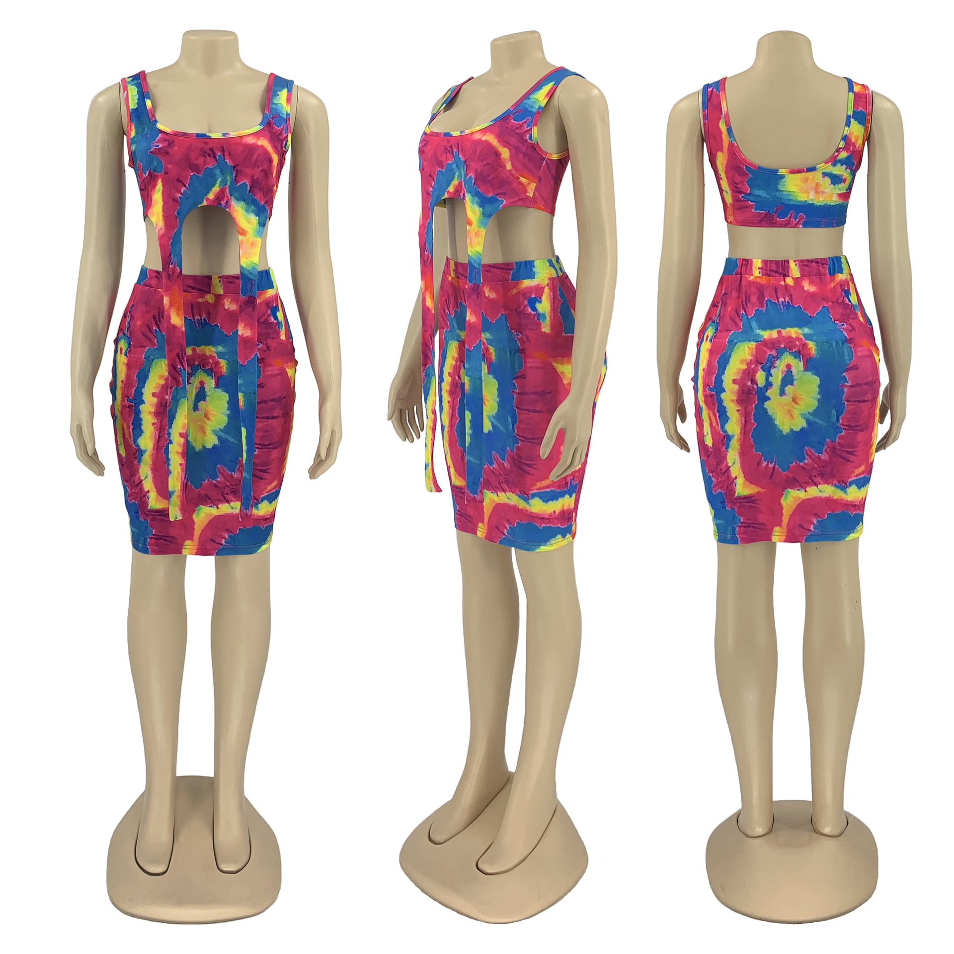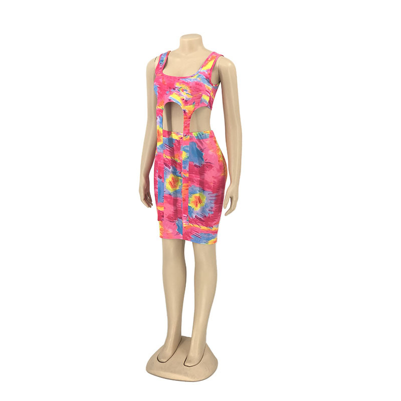 Printed Tie-dye Casual Skirt Outfit Vest Two-piece Set
