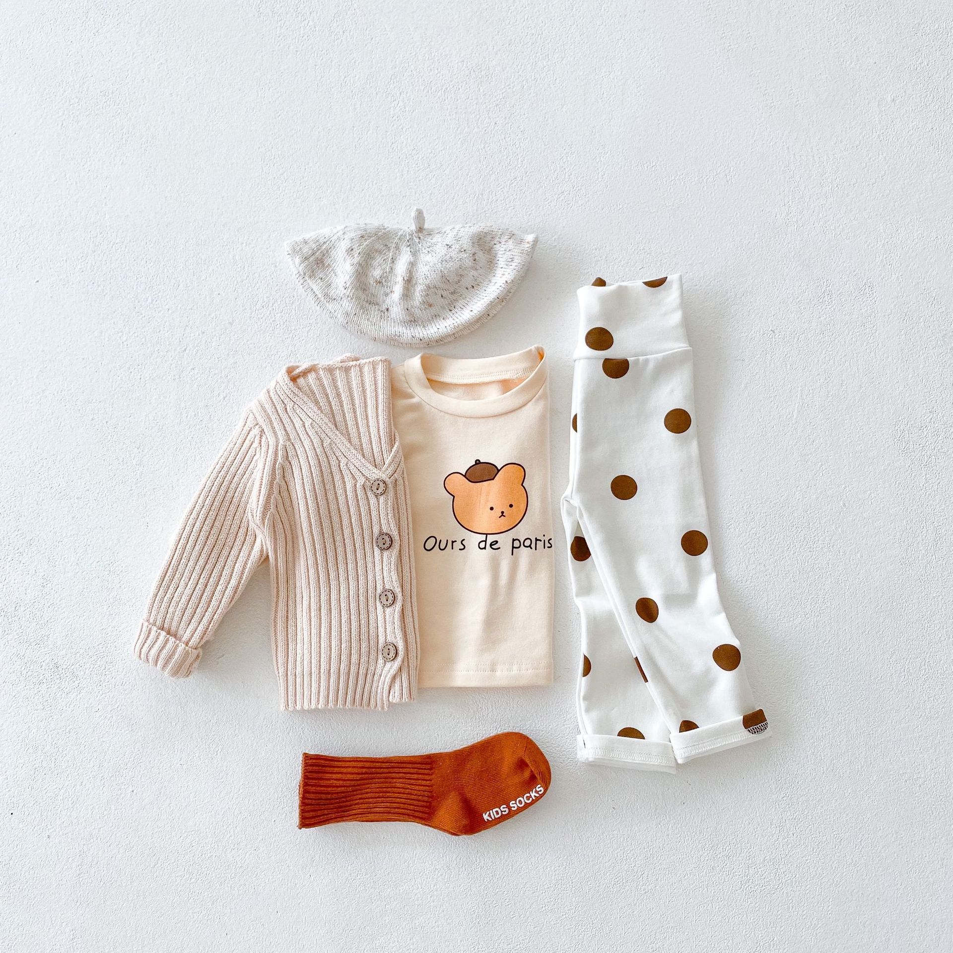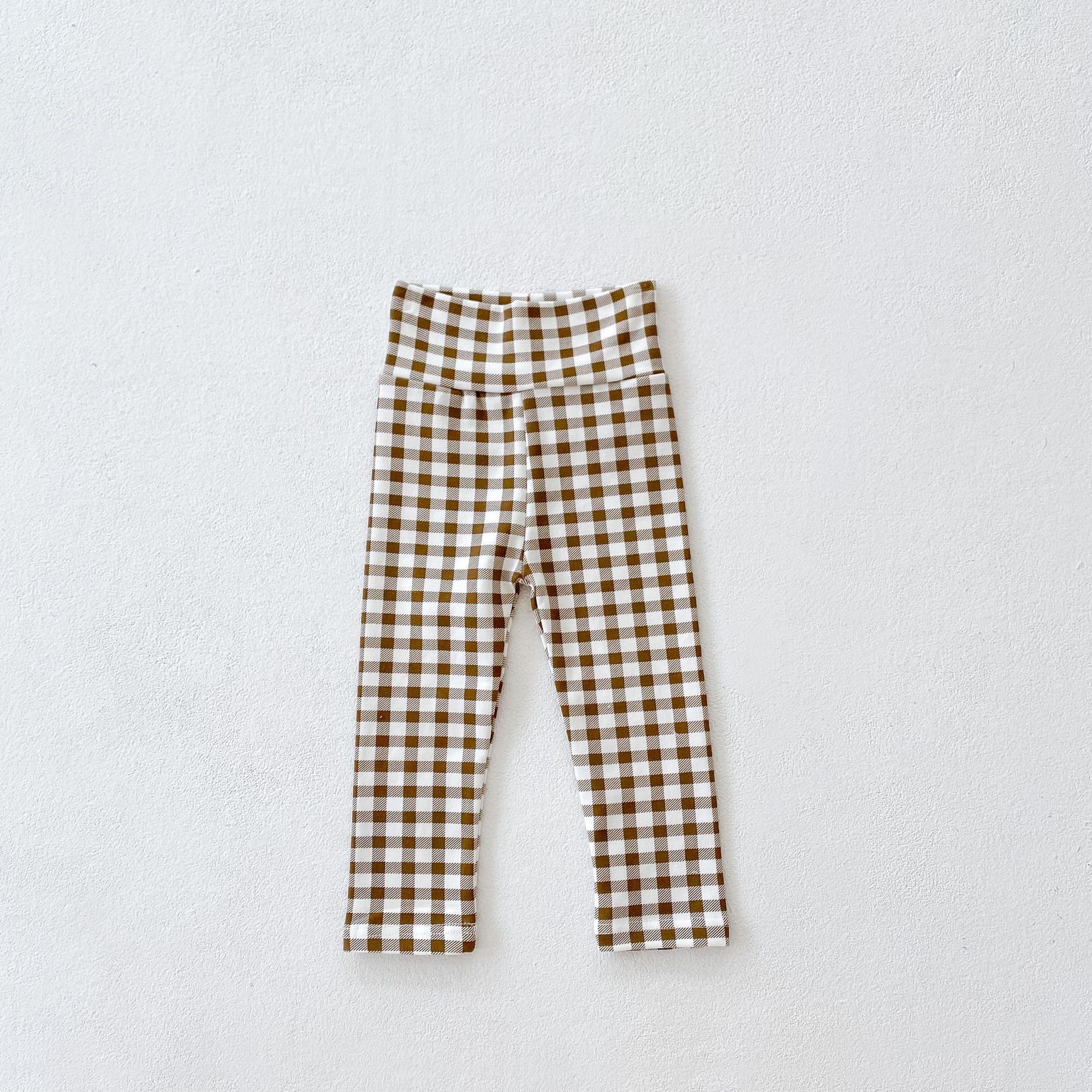 Color: plaid (trousers), dots (trousers), khaki (top), beige (top), mahogany (coat), stone pink (coat)