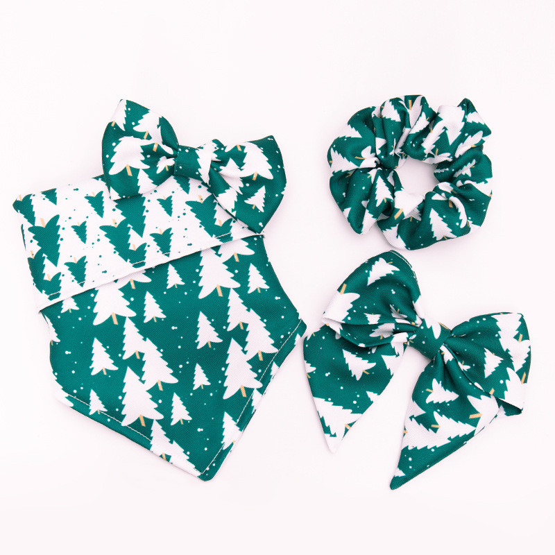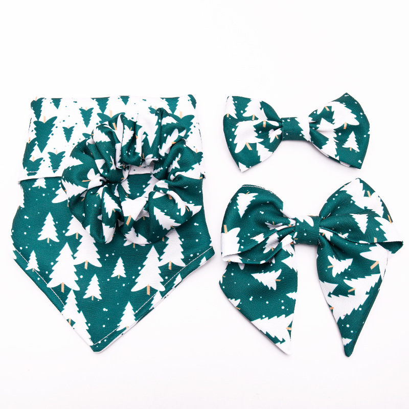 Style: Christmas tree four sets, Christmas tree bow tie 12*7cm, Christmas tree hair ring 9*9cm, Christmas tree bow 13*12cm, Christmas tree double triangle towel M size