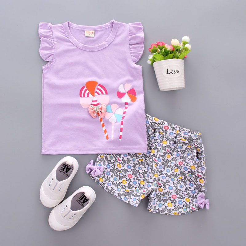 Printed two-piece suit Korean cartoon short sleeve suit