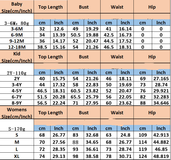Size: suitable for height S, M, L, XL, 3-6M, 6-9M, 9-12M, 12-18M, 2Y, 3-4Y, 4-5Y, 6-7Y, 8-9Y