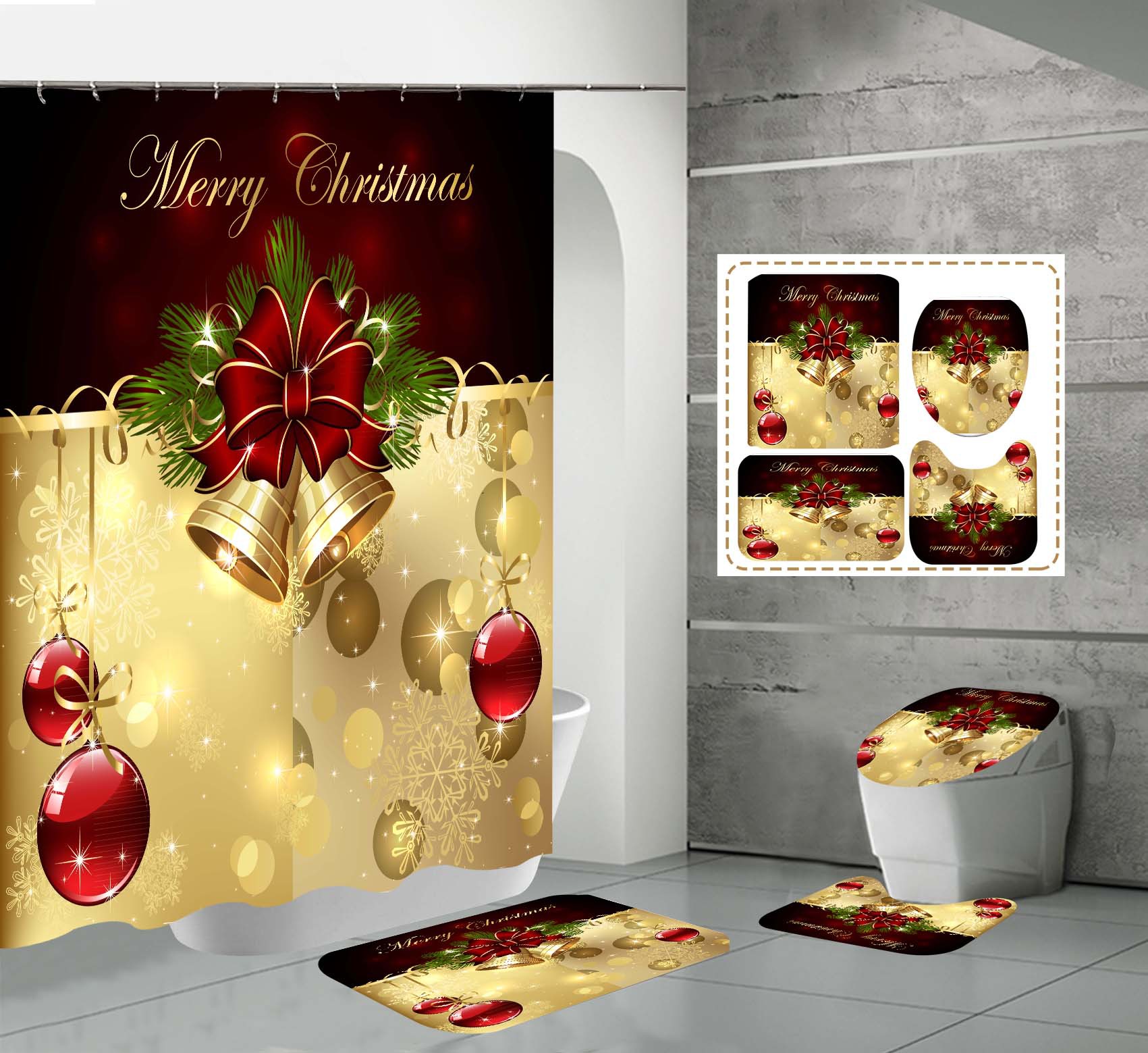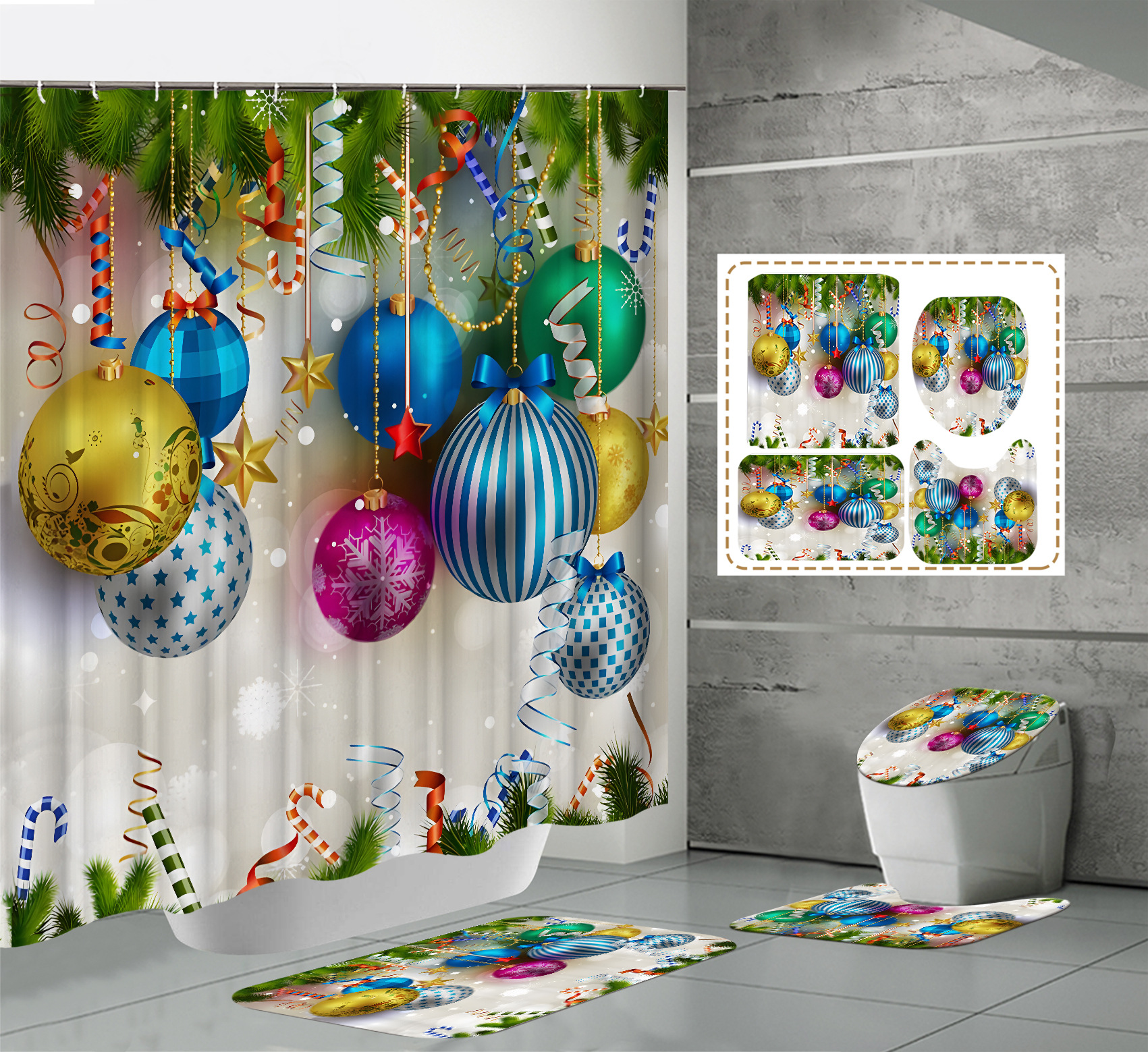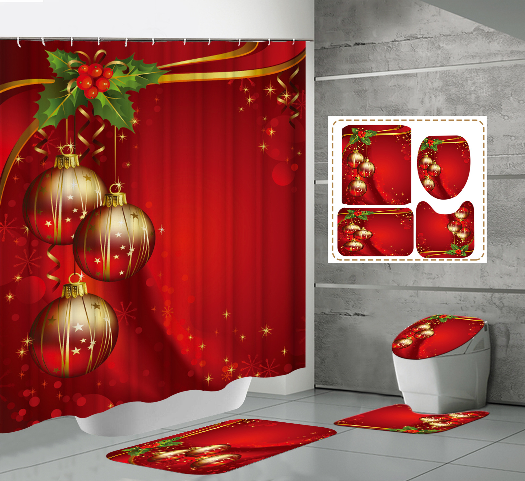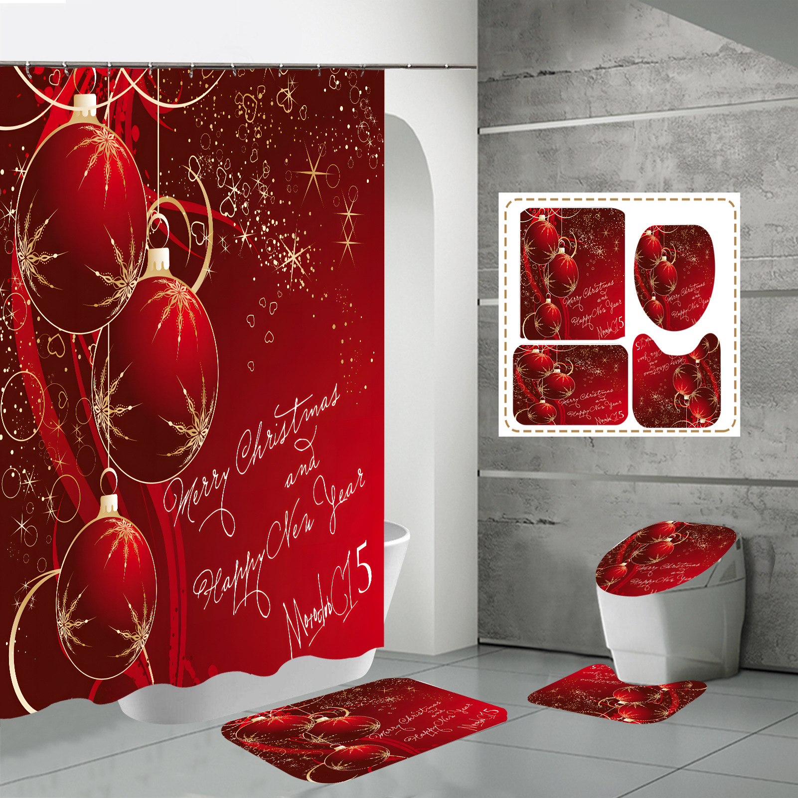 Specifications: 90x180-220G,120x180-270G,150x180-320G,165x180-360G,180x180-380G,180x200-420G,180X220-480, three-piece floor mat U-shaped toilet cover-320g, four-piece set-180X180 shower curtain floor mat U-shaped Mat toilet cover 700g