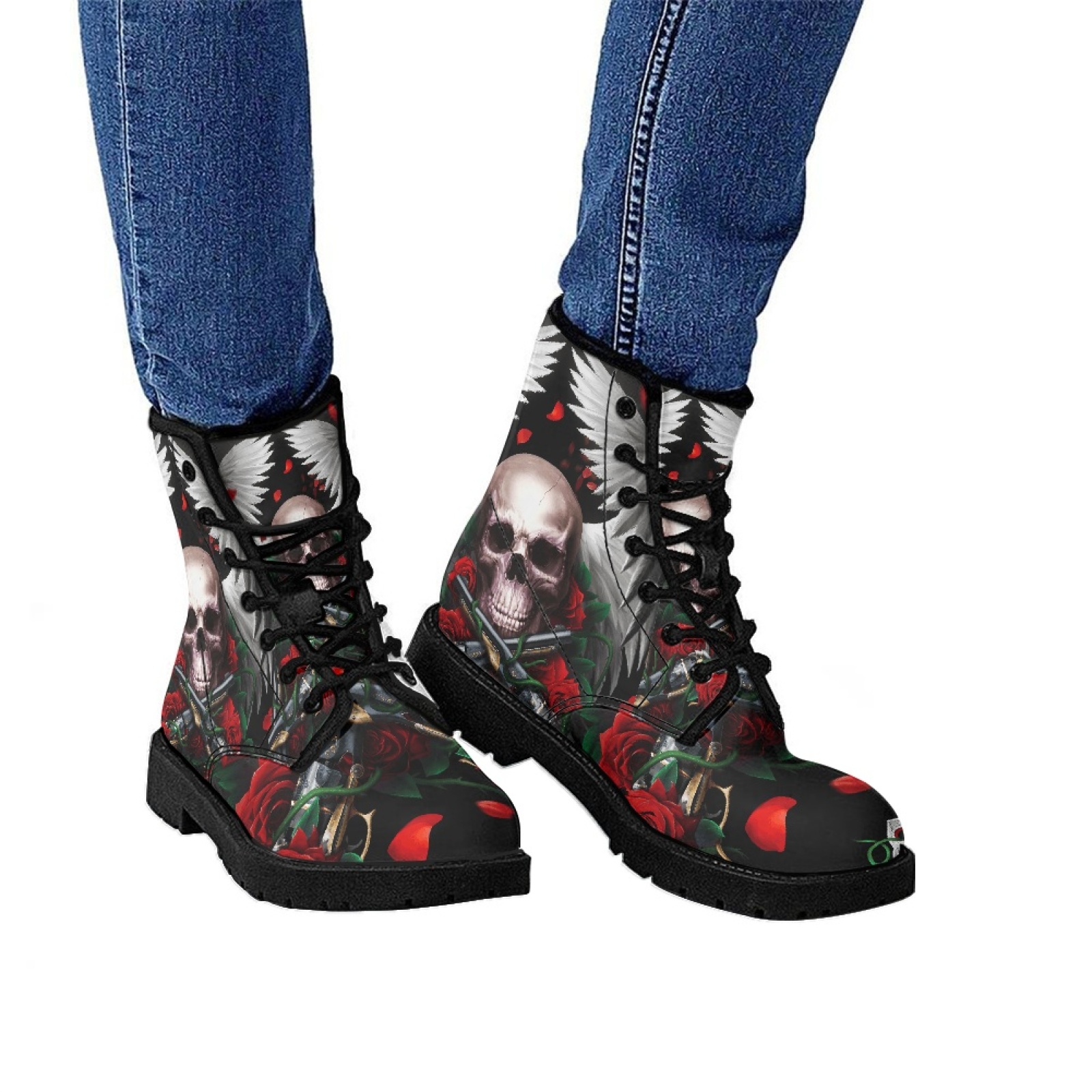Printed Women's Leather Flat Bottom Low Heel British Martin Boots