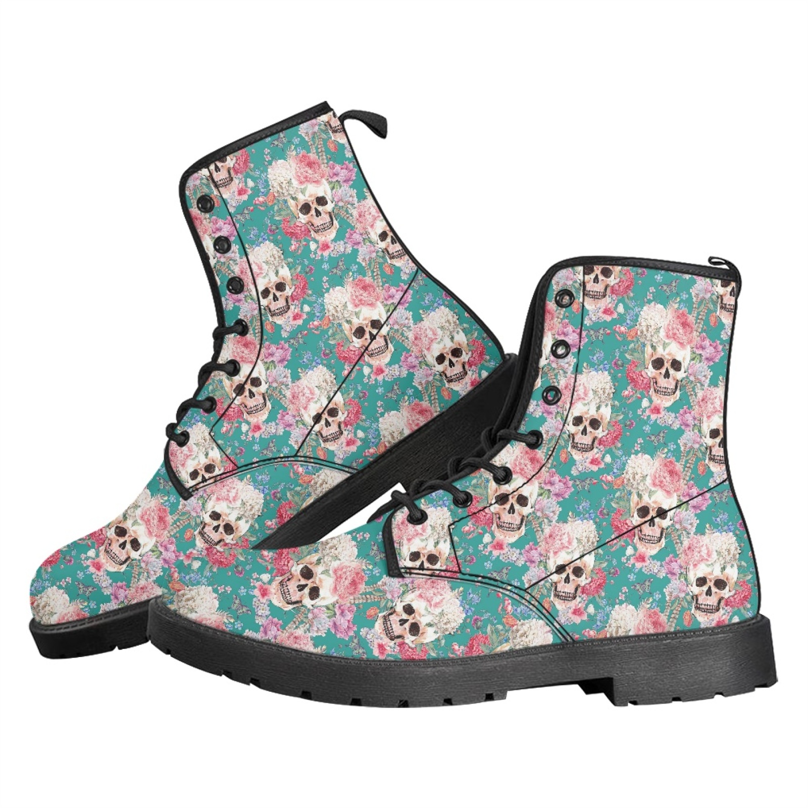 Printed Women's Leather Flat Bottom Low Heel British Martin Boots