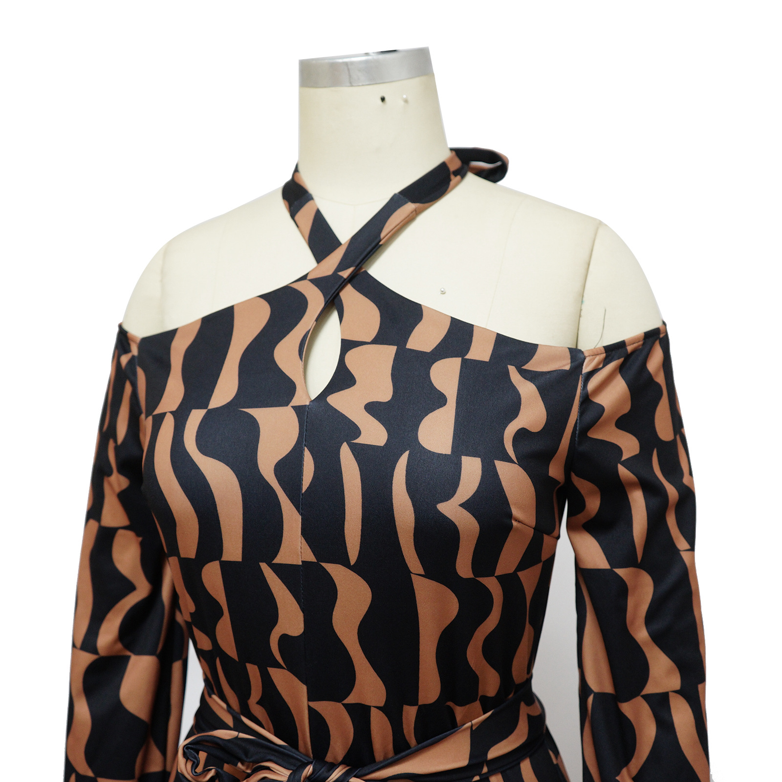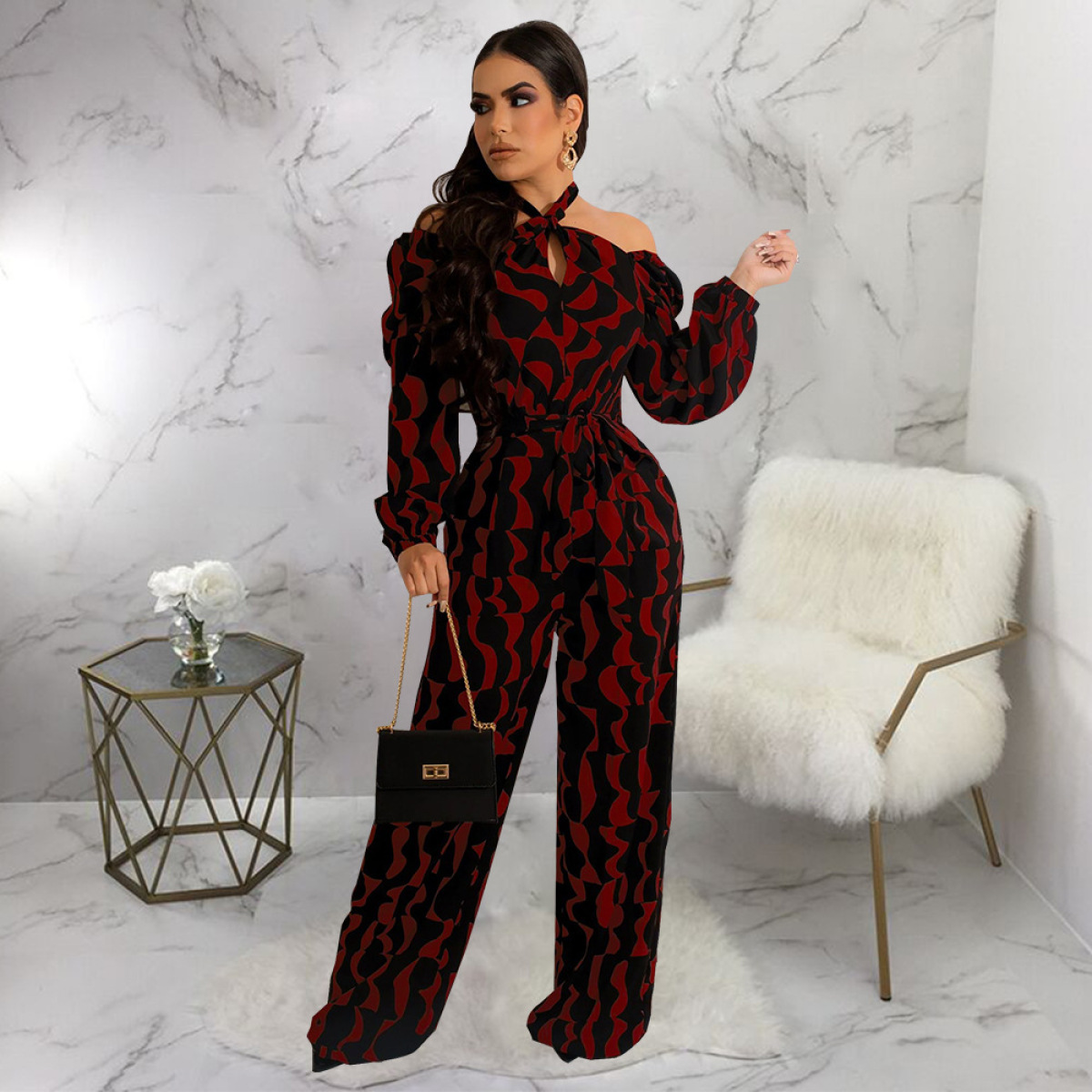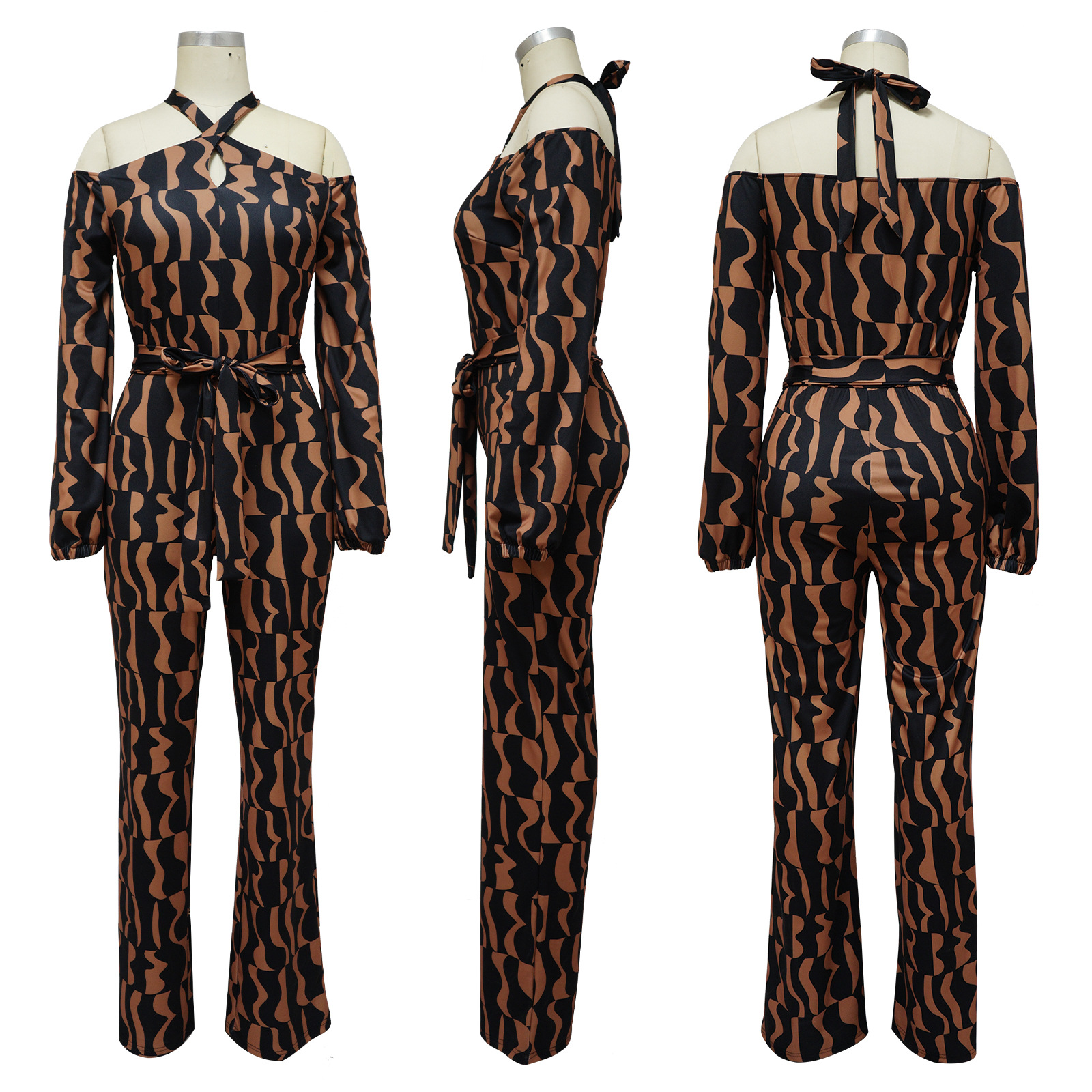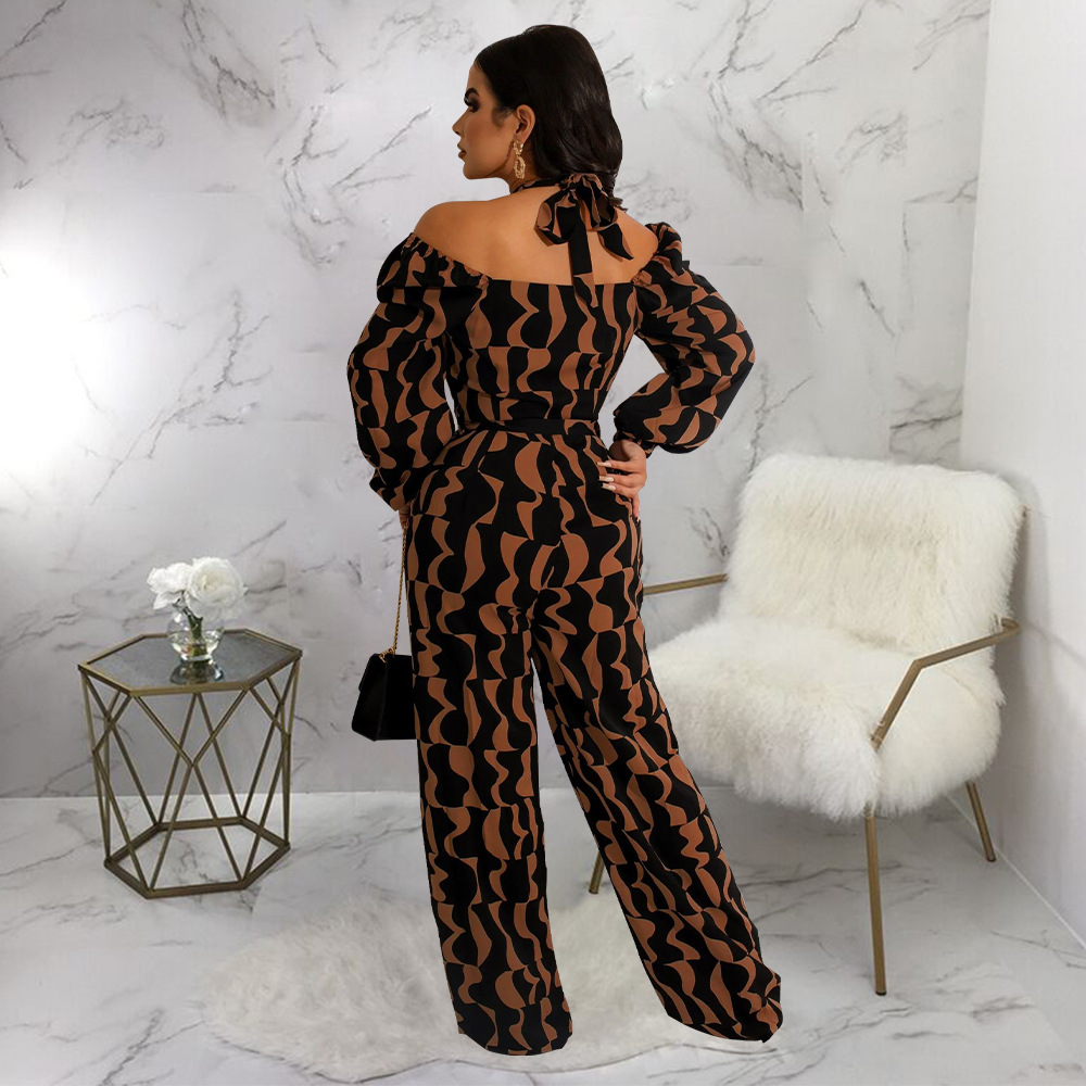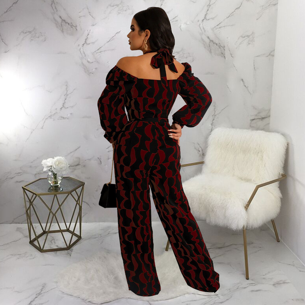 Printed Women's Long-sleeved Halter Jumpsuit
