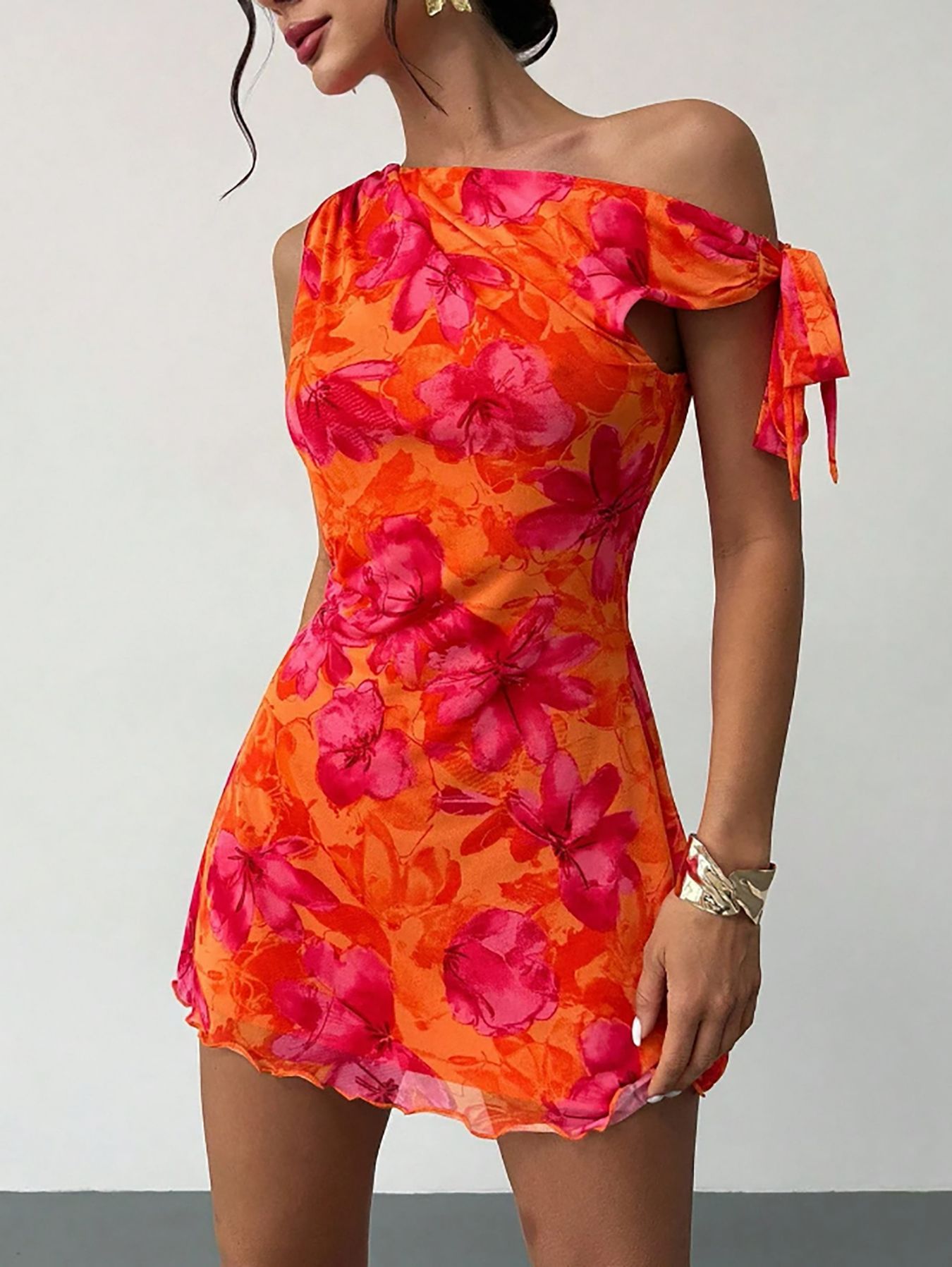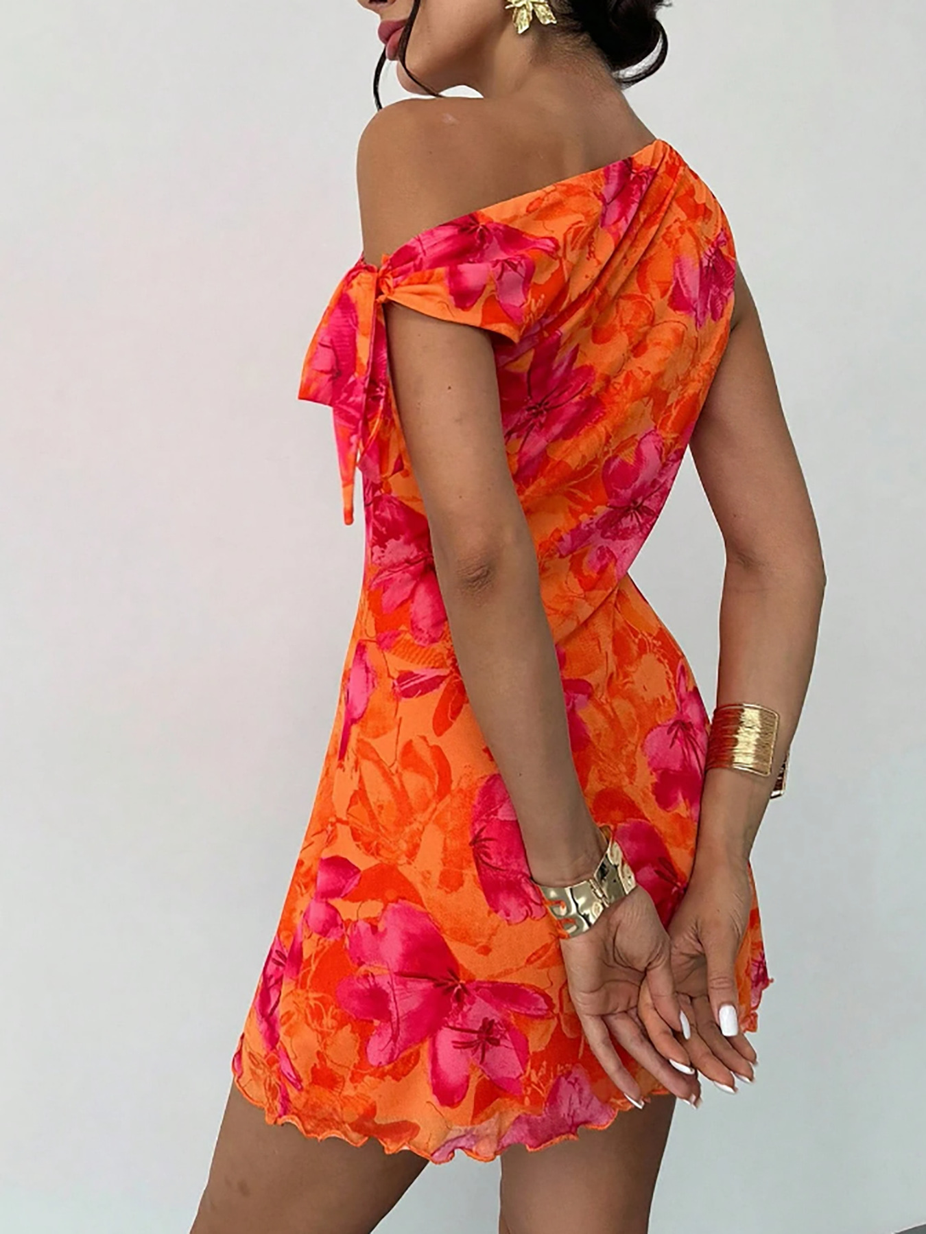 Trendy Elements: Fashionable, Defined Waist, Off-shoulder, Ribbon Ties