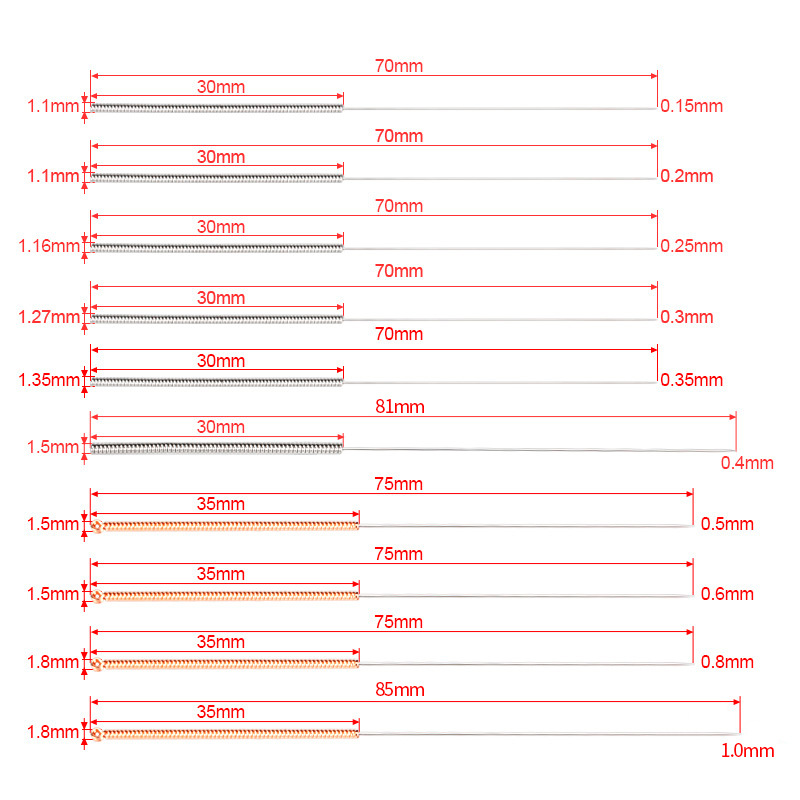 Specifications: 0.2 (10 pieces per box),0.25 (10 pieces per box),0.3 (10 pieces per box),0.35 (10 pieces per box),0.4 (10 per box)