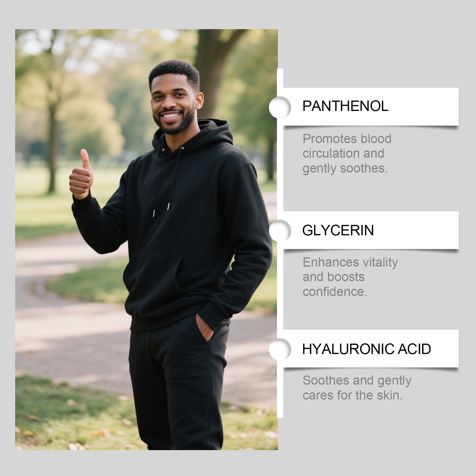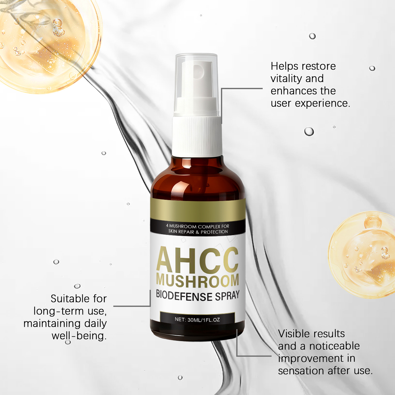 Active ingredients: panthenol, hyaluronic acid, mushroom extract, crane ganoderma extract, Grifola frondosa fruiting body extract, Pleurotus ostreatus extract and mushroom mycelium extract.