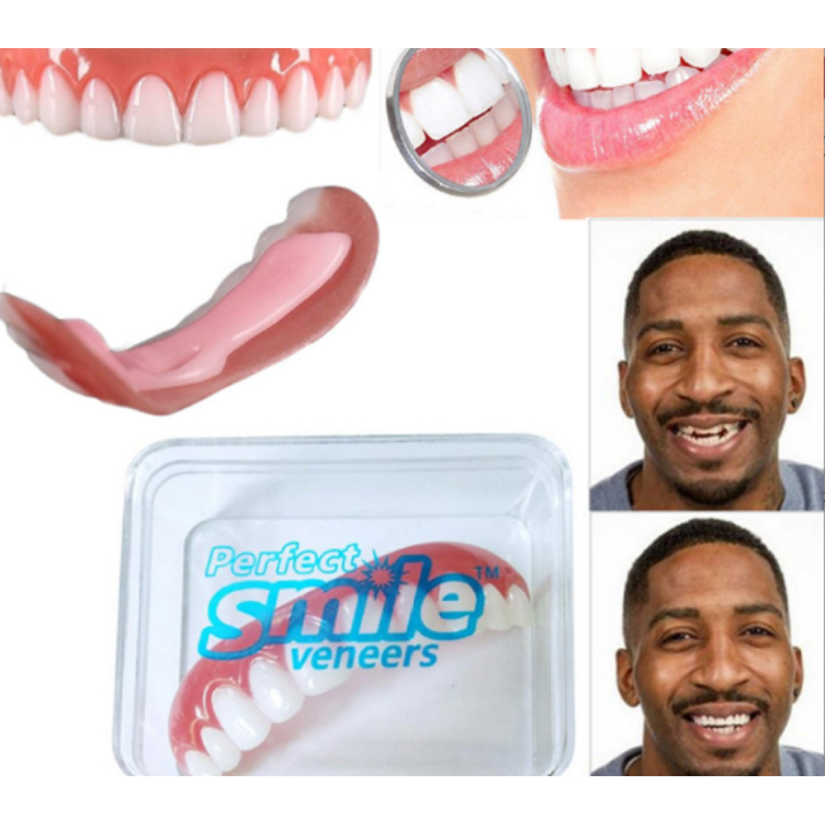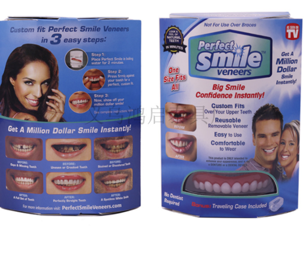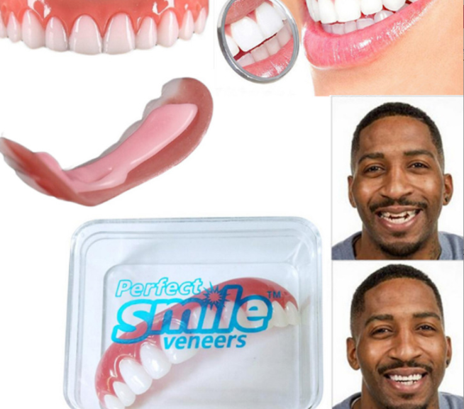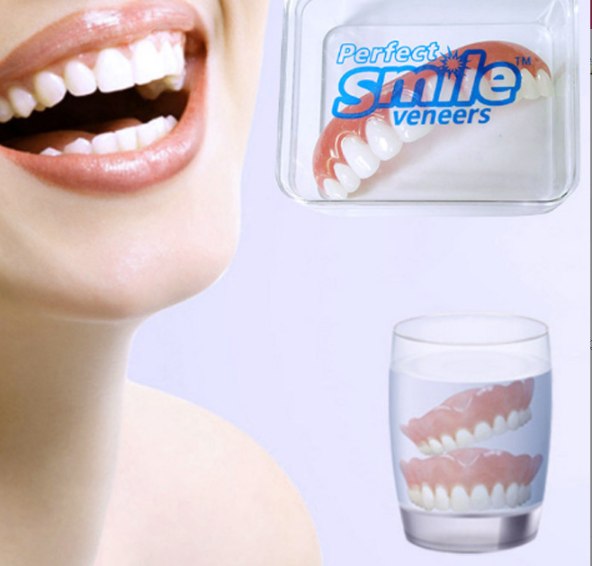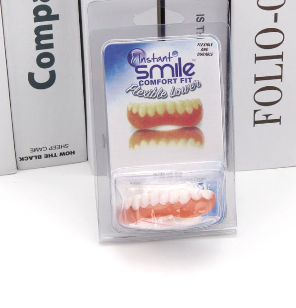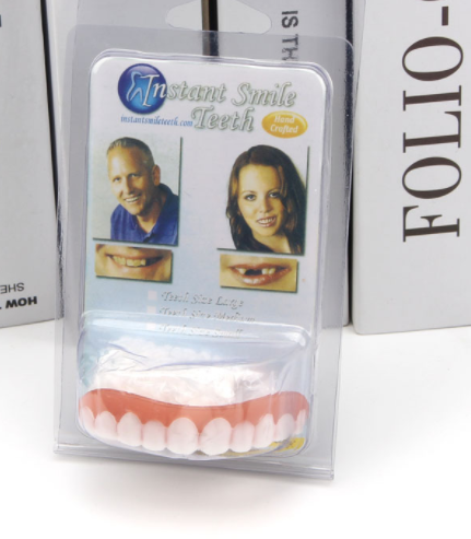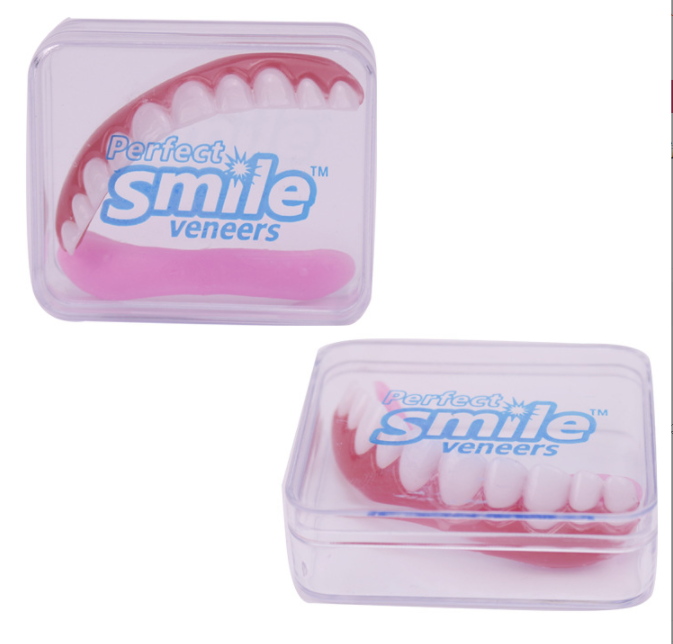 Do you feel self-conscious about your smile? Do you need a fast and inexpensive fix? Now you can have beautiful white teeth! Unlike dentures, the Instant Smile Flex are comfortable, flexible and fit over your teeth similar to press on veneers. The perfect adult makeover that is simple to fit within a few short minutes before transforming your teeth into the perfect smile. These handmade teeth are easy to fit after carefully submerging them in hot water. The step by step instructions are printed on the back of the package. Ideal for everyday use, at your work, college, reunions, weddings and any type of family gathering. Includes compact carrying case.