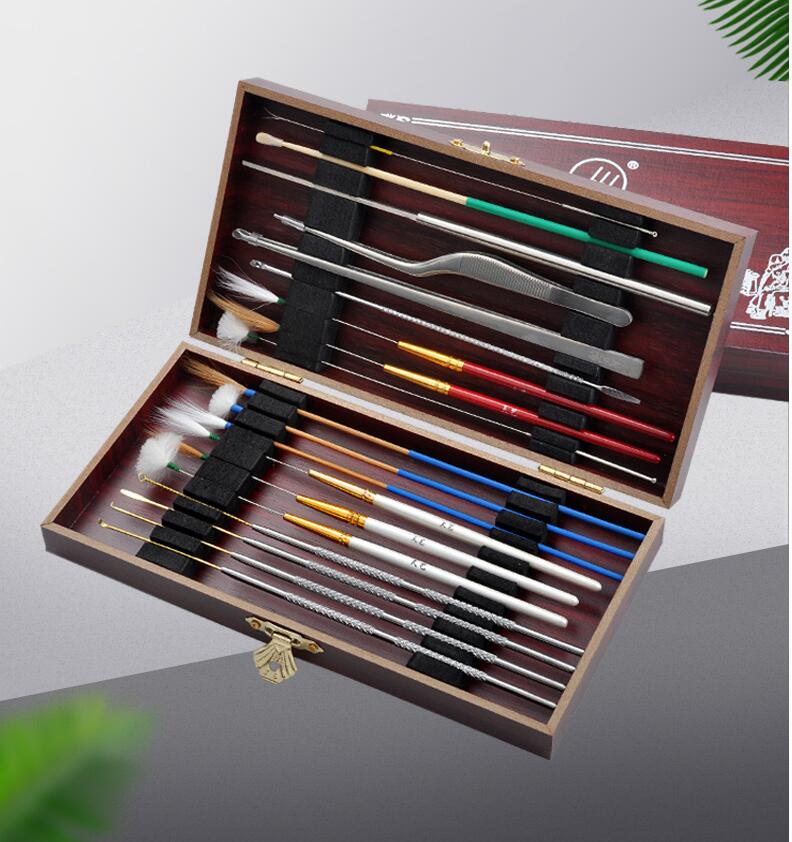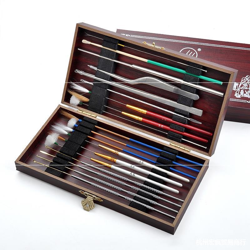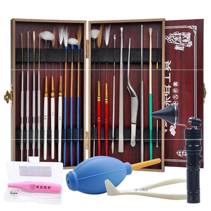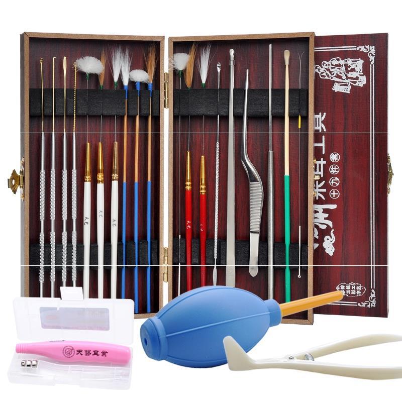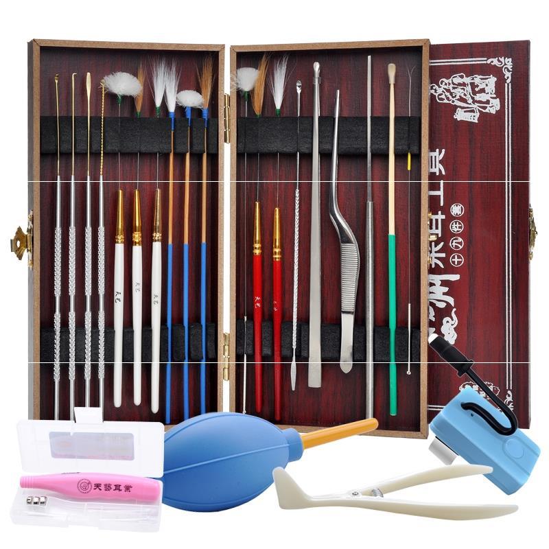 A: 19 pieces of wood grain ear pick + luminous ear pick + ear blowing ball + ear expander,