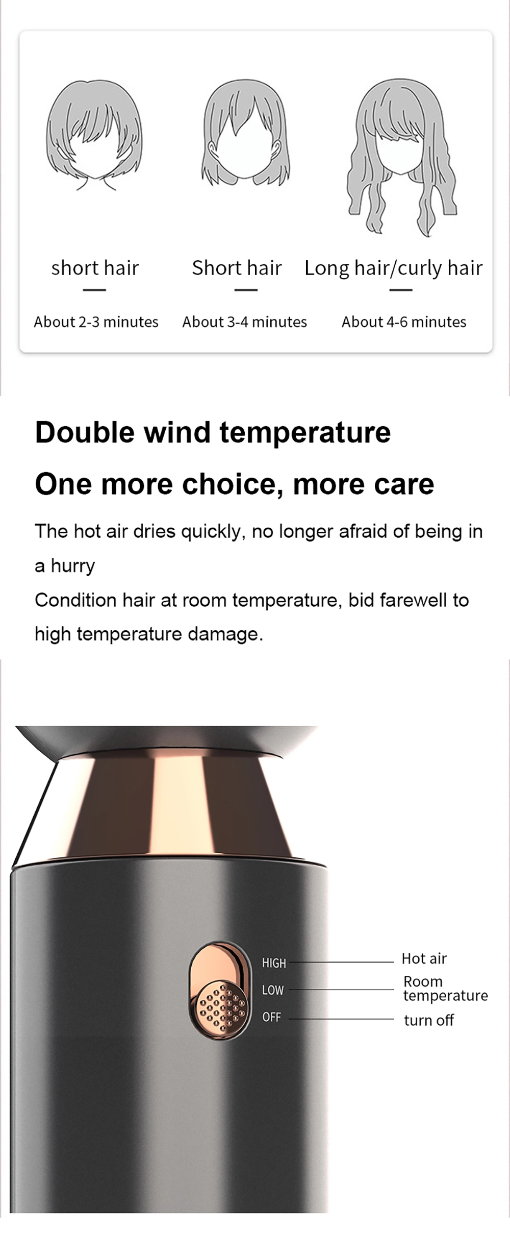 6.Dry hair evenly and quickly.