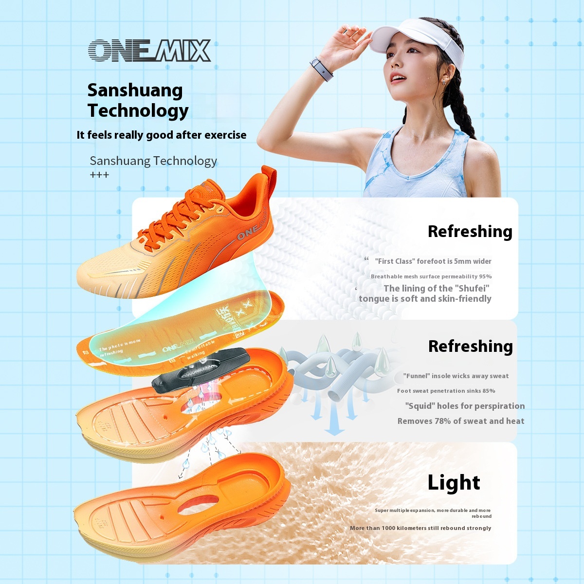 Function: breathable, waterproof, balanced, lightweight, deodorant, non-slip, wear-resistant, support, sweat absorption, shock absorption, anti-static, wrapping, reflective night vision